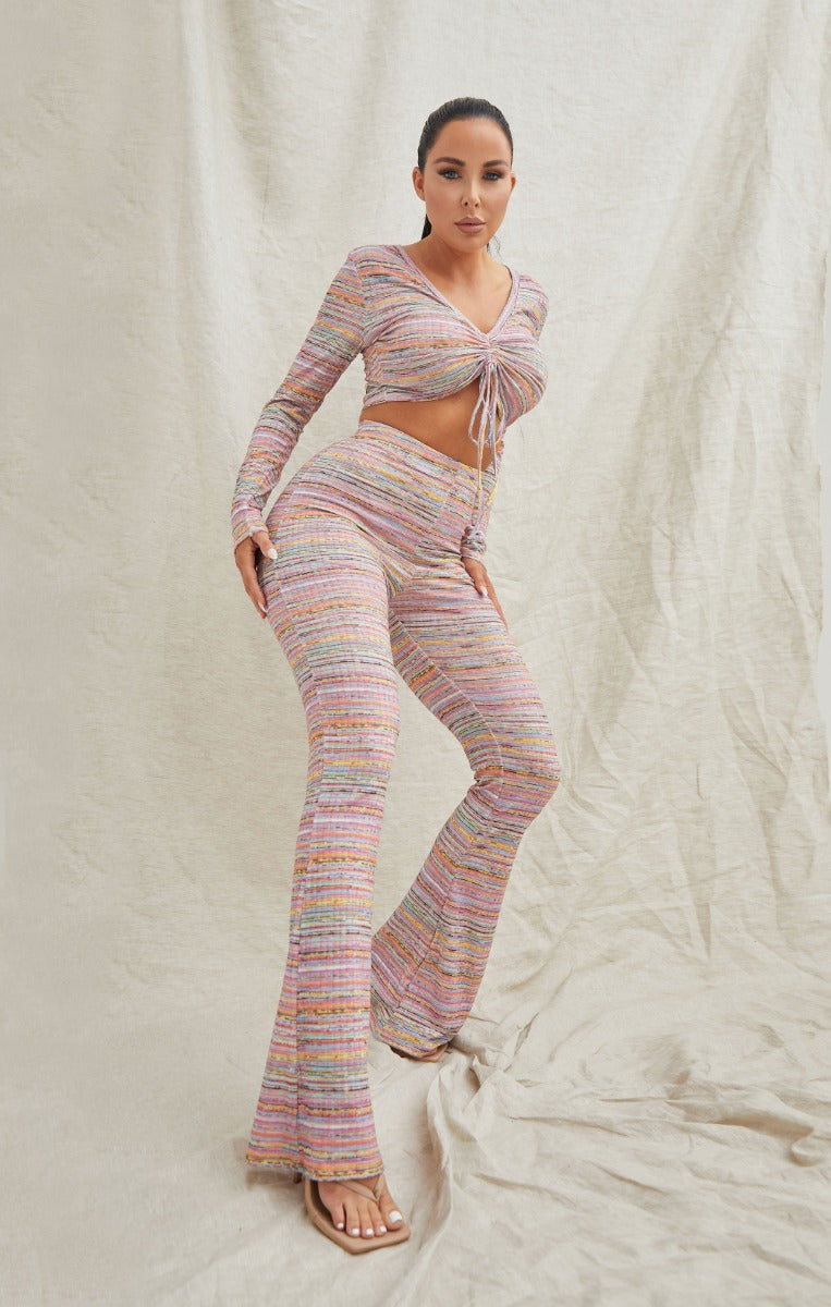 A flared crop top and trousers co-ord? Yes, please! Nothing says you’re ready to boogie your way through the day more than our Pink Multi-Colour Ribbed Long Sleeve V Neck Crop Top High Waisted Flare Leg Trousers, a must-have when it comes to Reading festival outfits. With the waves of music creating an eclectic atmosphere and your besties by your side, look and feel euphoric while you party in this go-to Reading festival outfit from morning into the after hours.