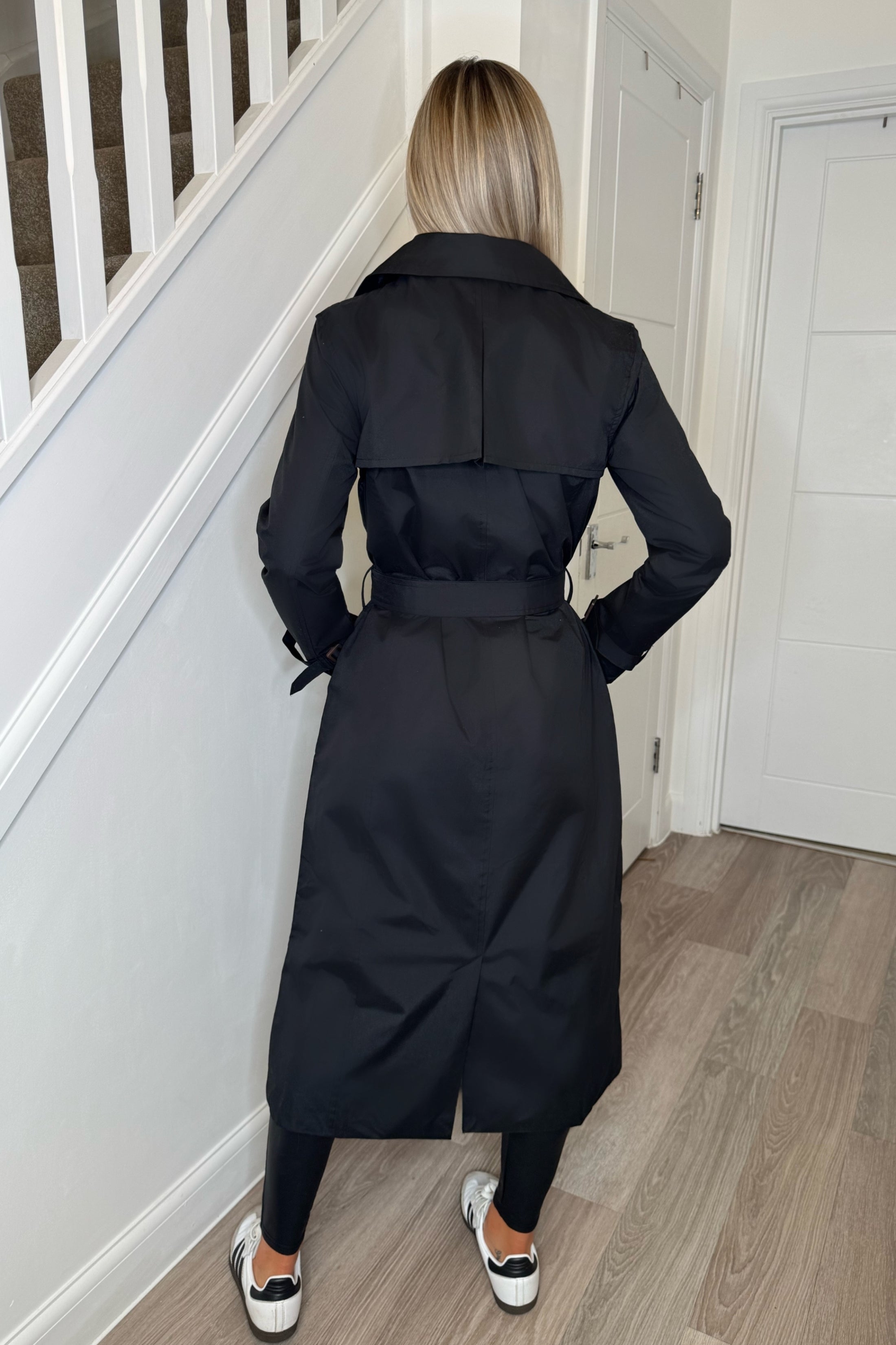 Black Double Breasted Longline Trench Coat - Evie