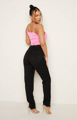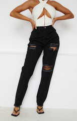 Channel your edgier side with our Black High Waisted Ripped & Distressed Straight Leg Jeans . Featuring a high waist, ripped and distressed detailing - complete in a straight leg fit and denim material. Team with marble print halter top and a chunky belt for a statement look you won't stop reaching for.