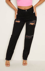 Black High Waisted Ripped & Distressed Straight Leg Jeans