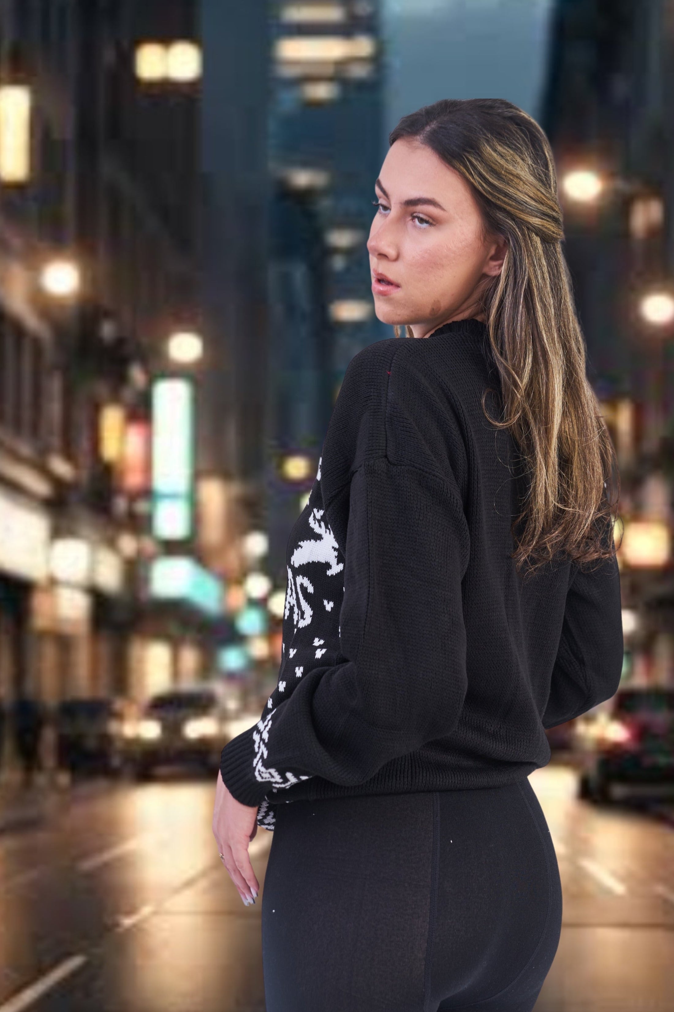 Get festive and turn heads this season with the bold and playful Black Merry Christmas Ya Filthy Animal Jumper . Crafted from a cozy knit fabric, this Christmas jumper features a striking black base adorned with festive white patterns and the iconic slogan from your favorite holiday classic. Perfect for spreading cheer at Christmas parties or lounging by the fire, this jumper is both fun and stylish. Team it with leggings and ankle boots for a cozy-chic winter look.
