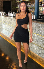 Black One Shoulder Cut Out Mini Dress - Jolie