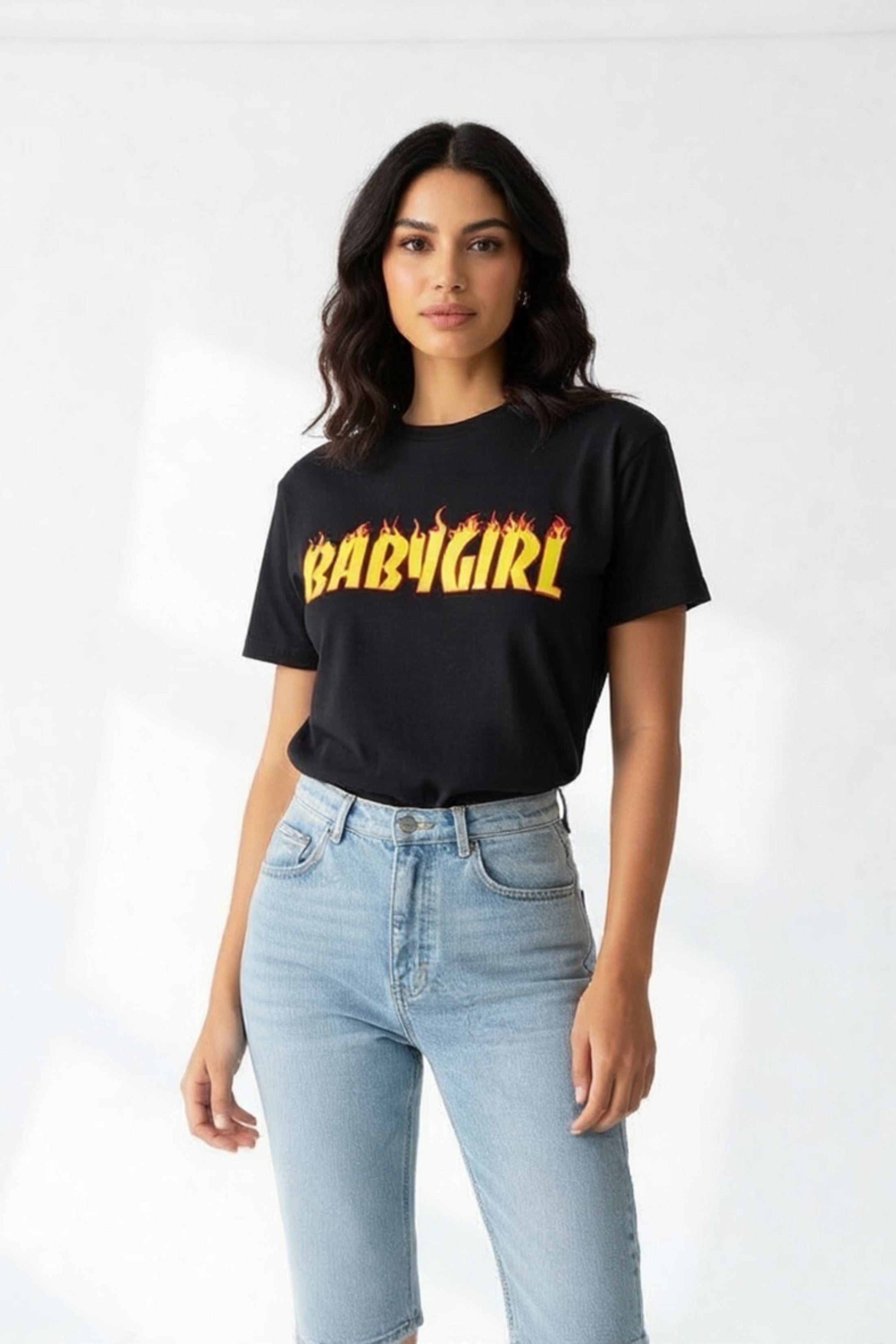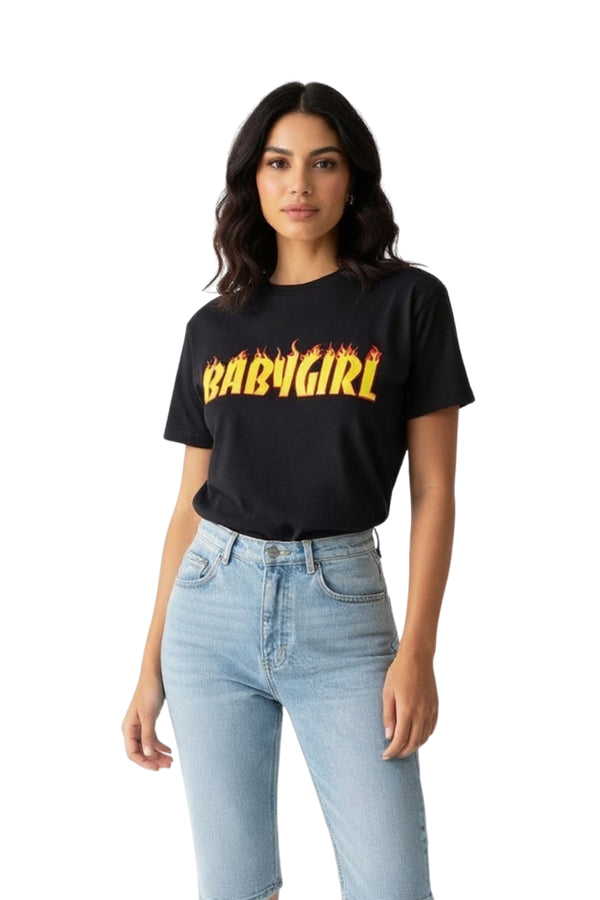 Black Oversized 'Baby Girl' Flame Slogan Print Short Sleeve T-shirt - Dea