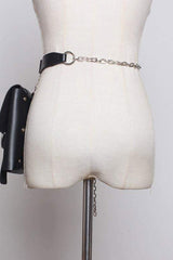 Black PU Leather Detachable Chain Belt Bag - Katelyn
