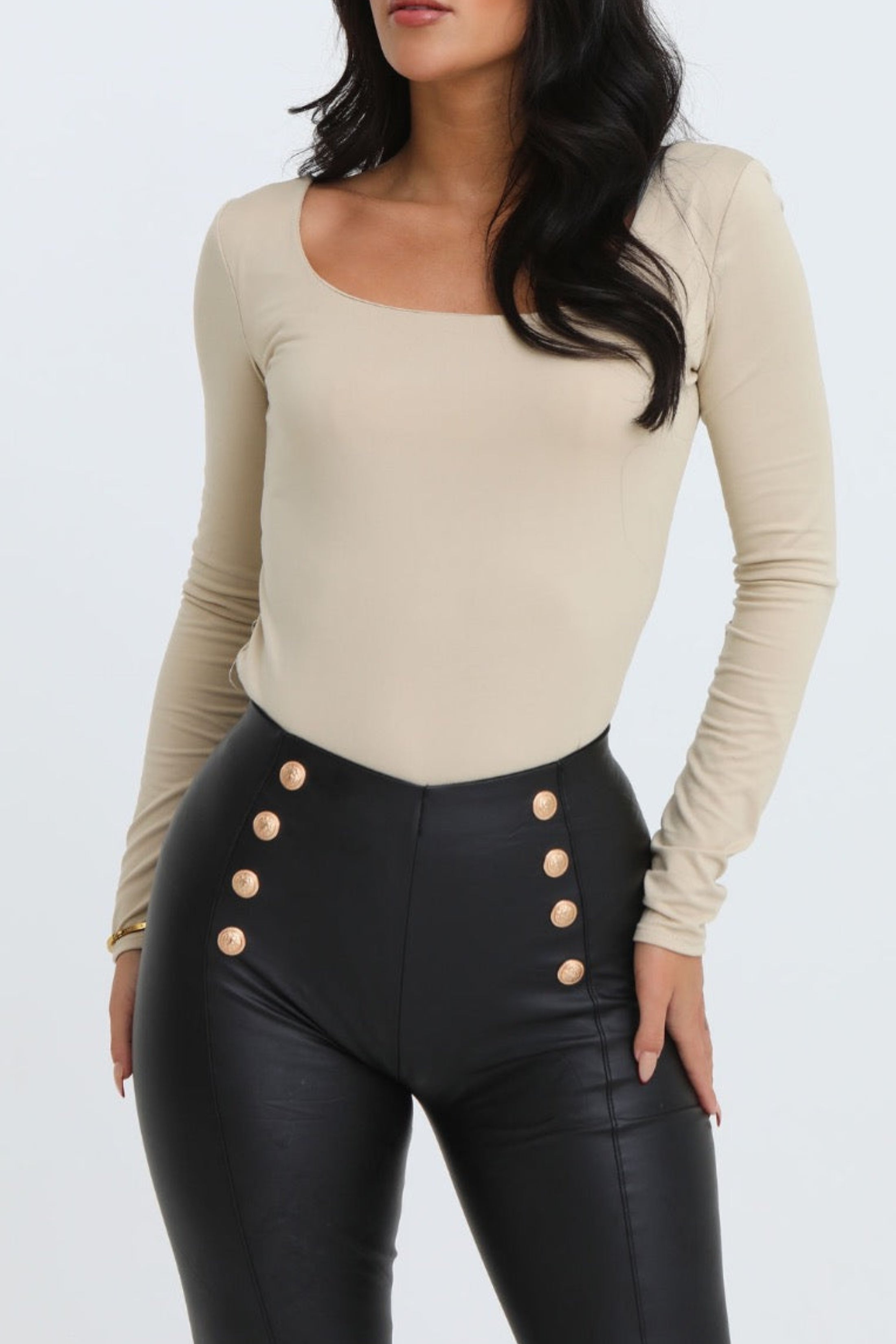 Black PU Leather High Waisted Button Detail Legging - Charlotte