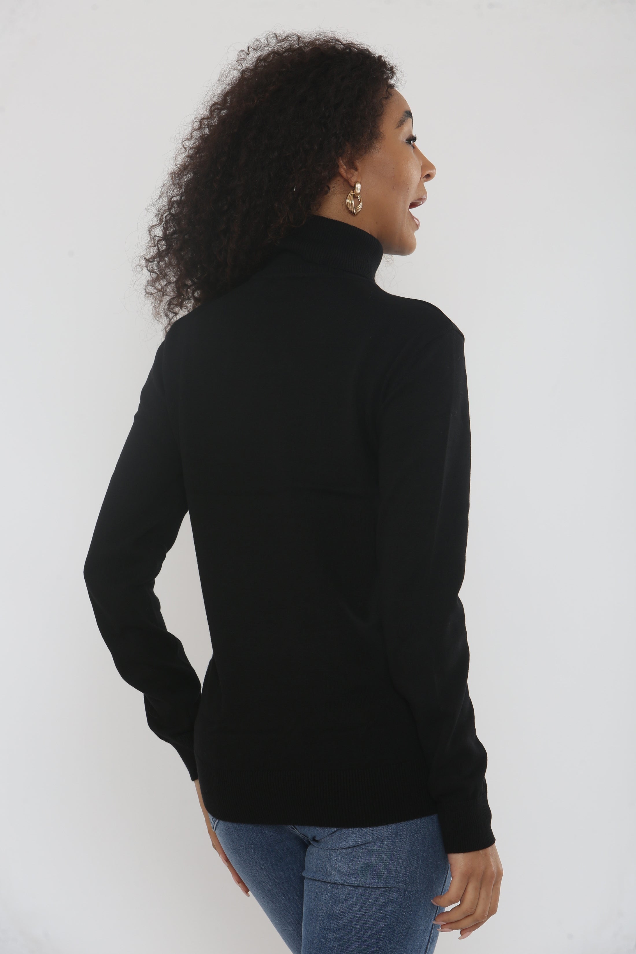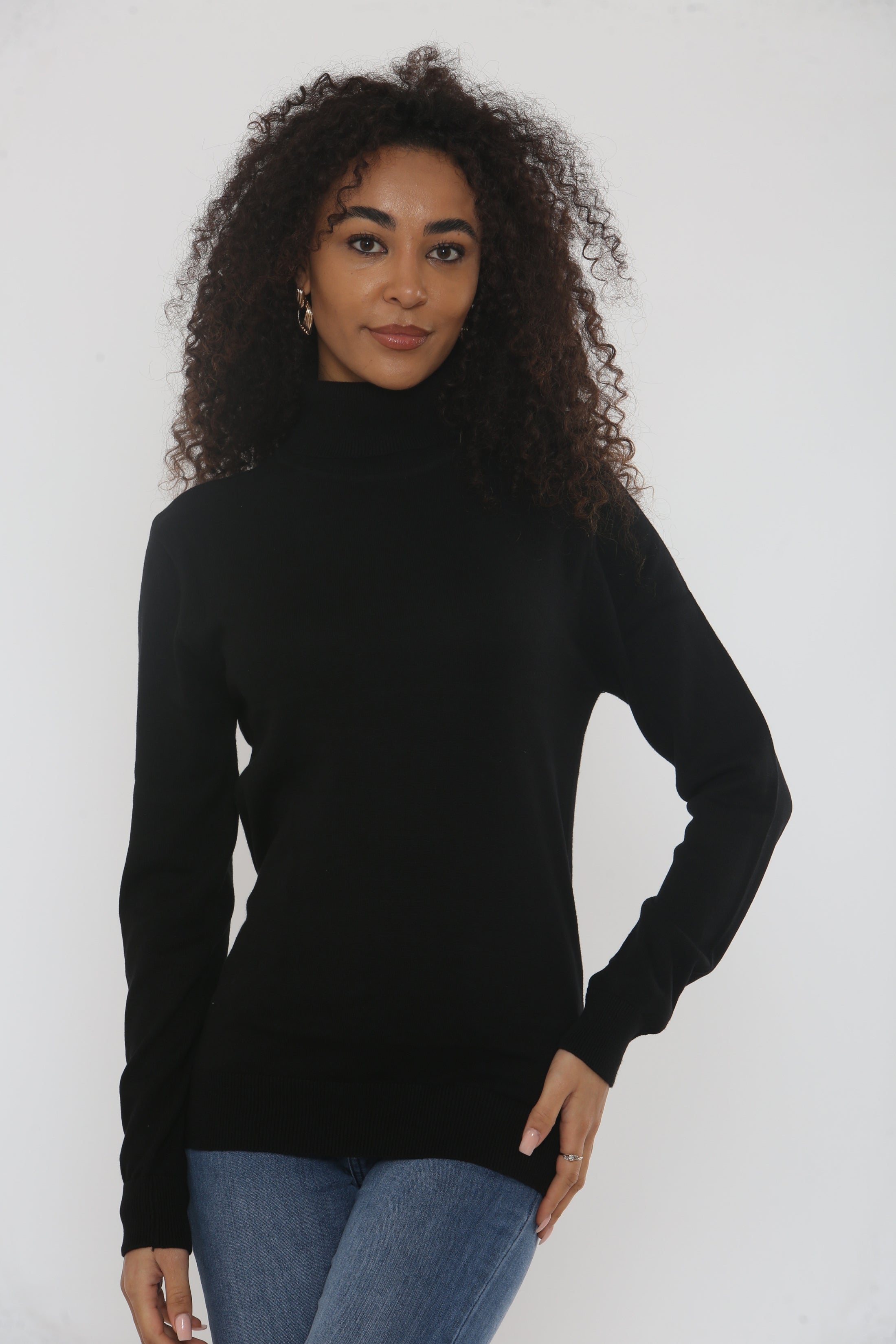 Black Roll Neck Long Sleeve Knitted Jumper – Yiana