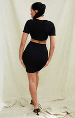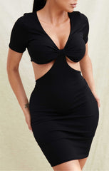 Black Short Sleeve Knot Detail Cut Out Bodycon Mini Dress - Akiko