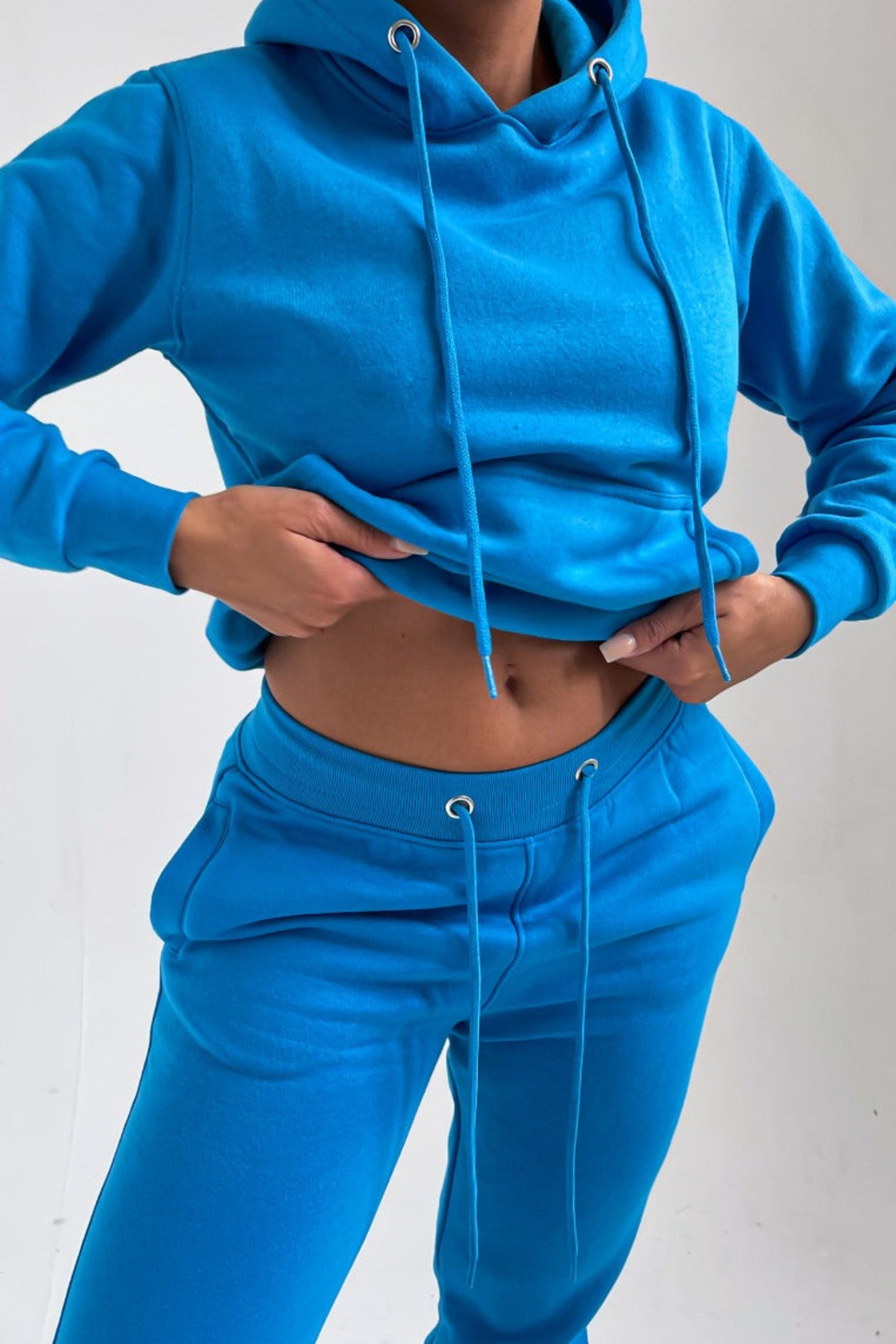 Blue Hoodie & Cuffed Joggers Loungewear Set