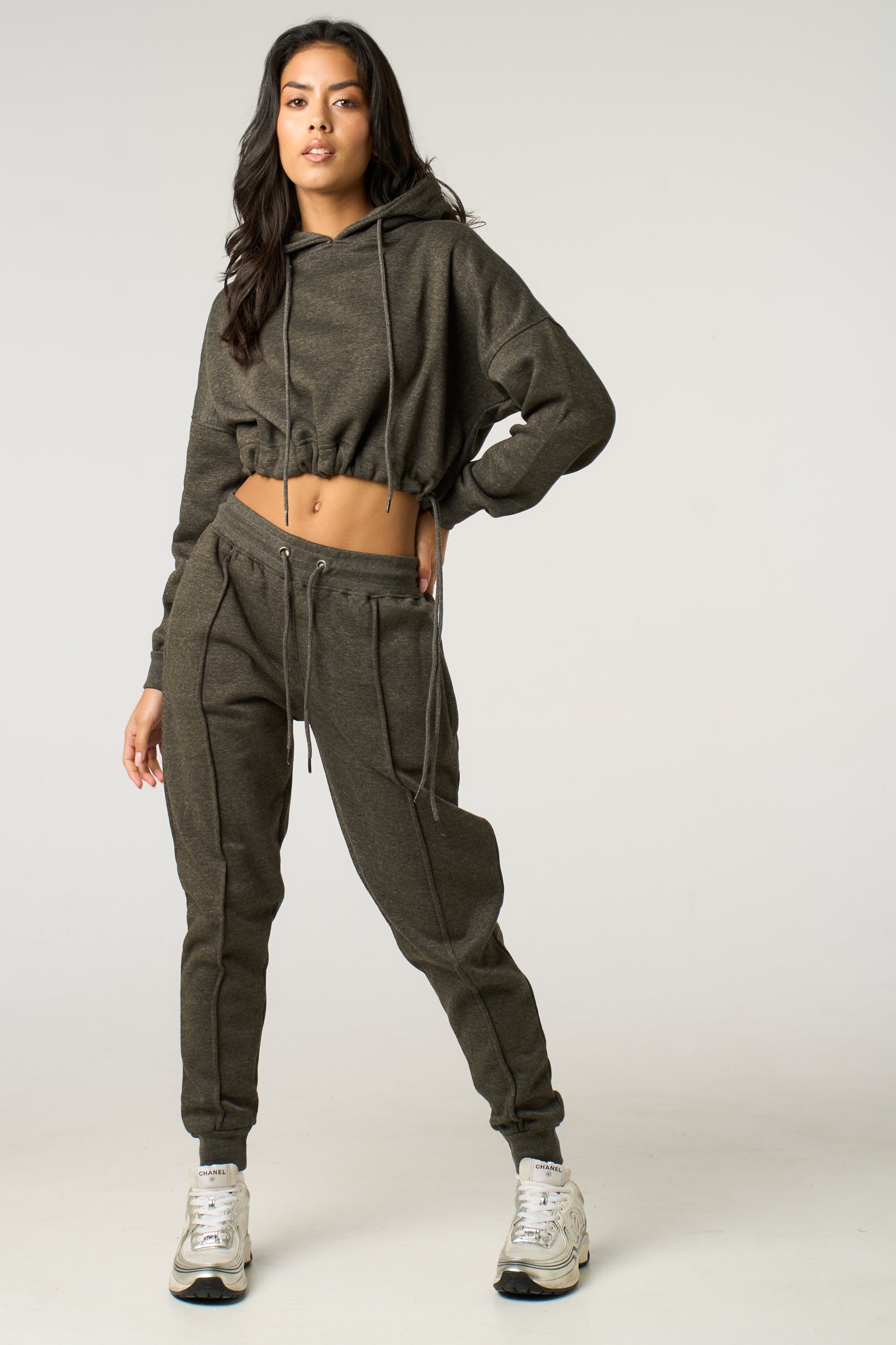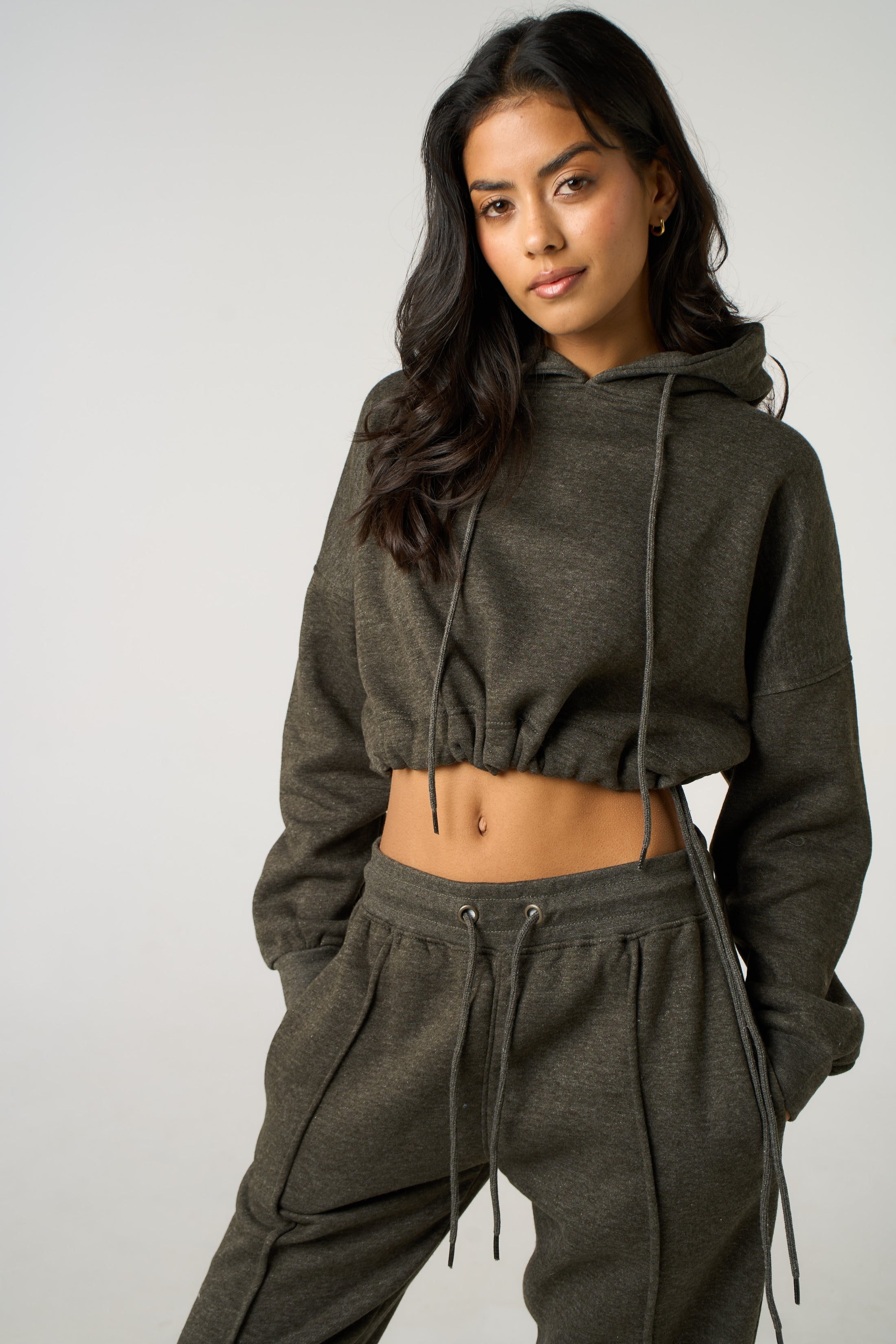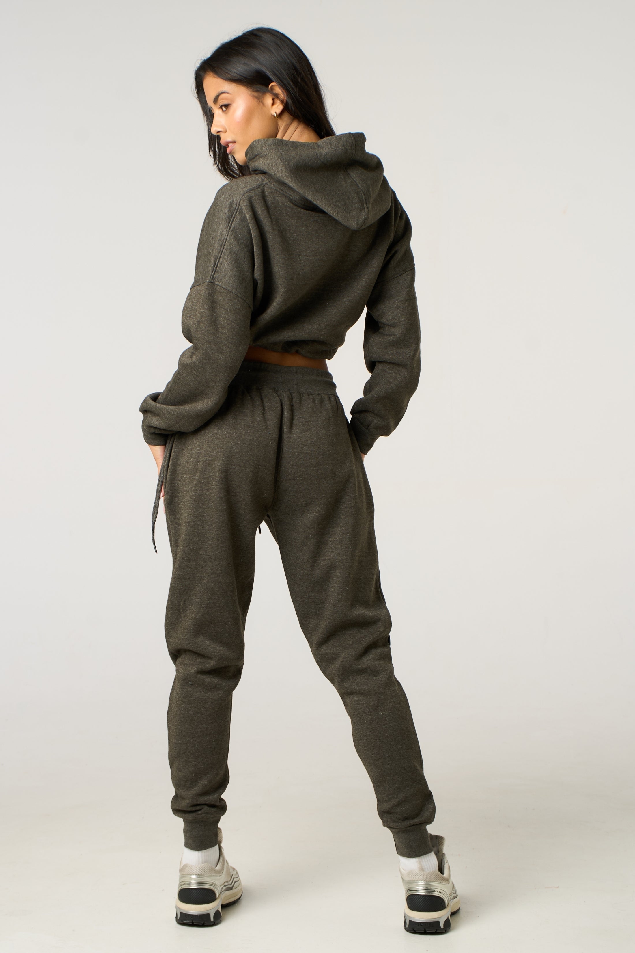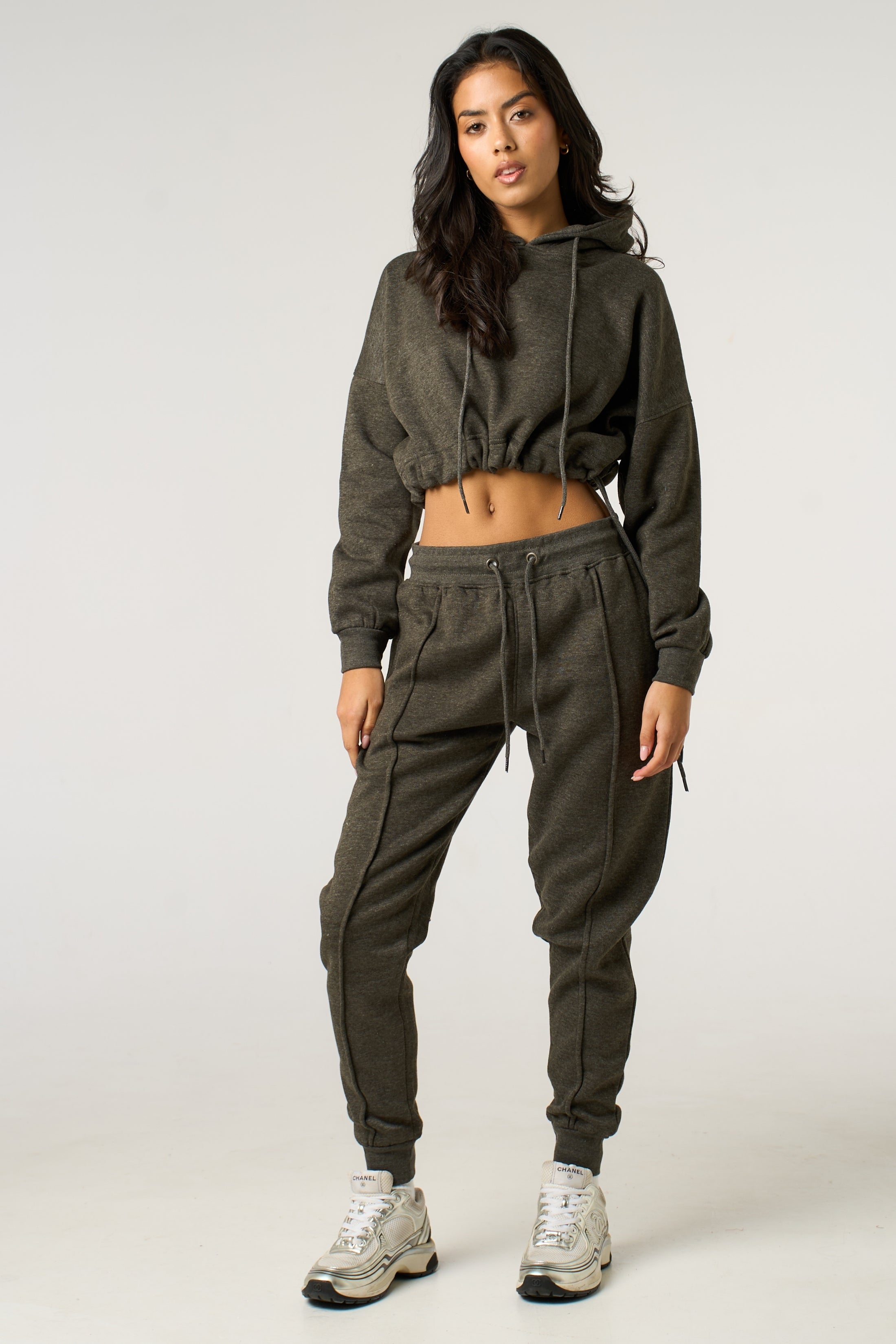 Charcoal Boxy Cropped Hoodie Cuffed Joggers Loungewear Set - Cailleigh