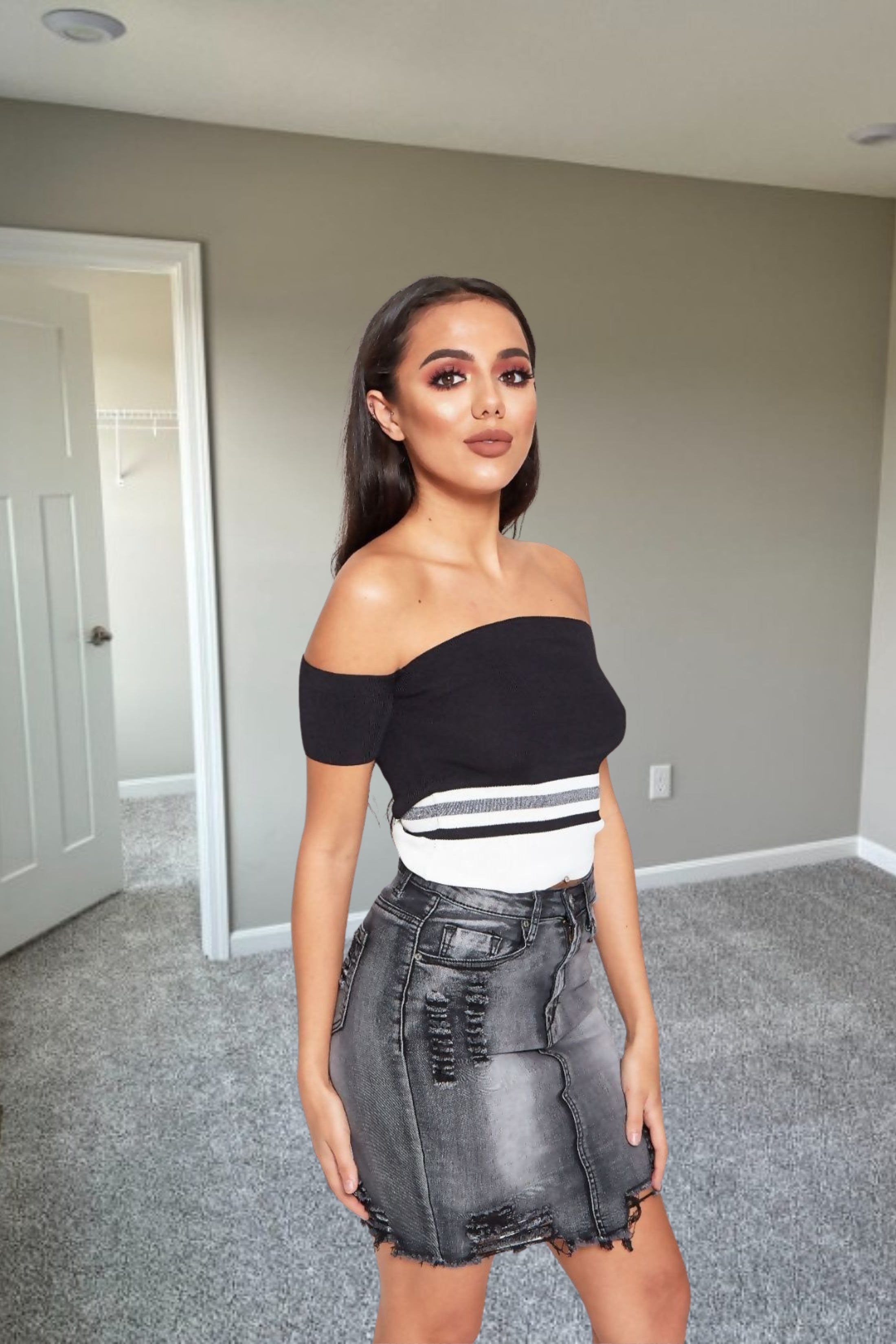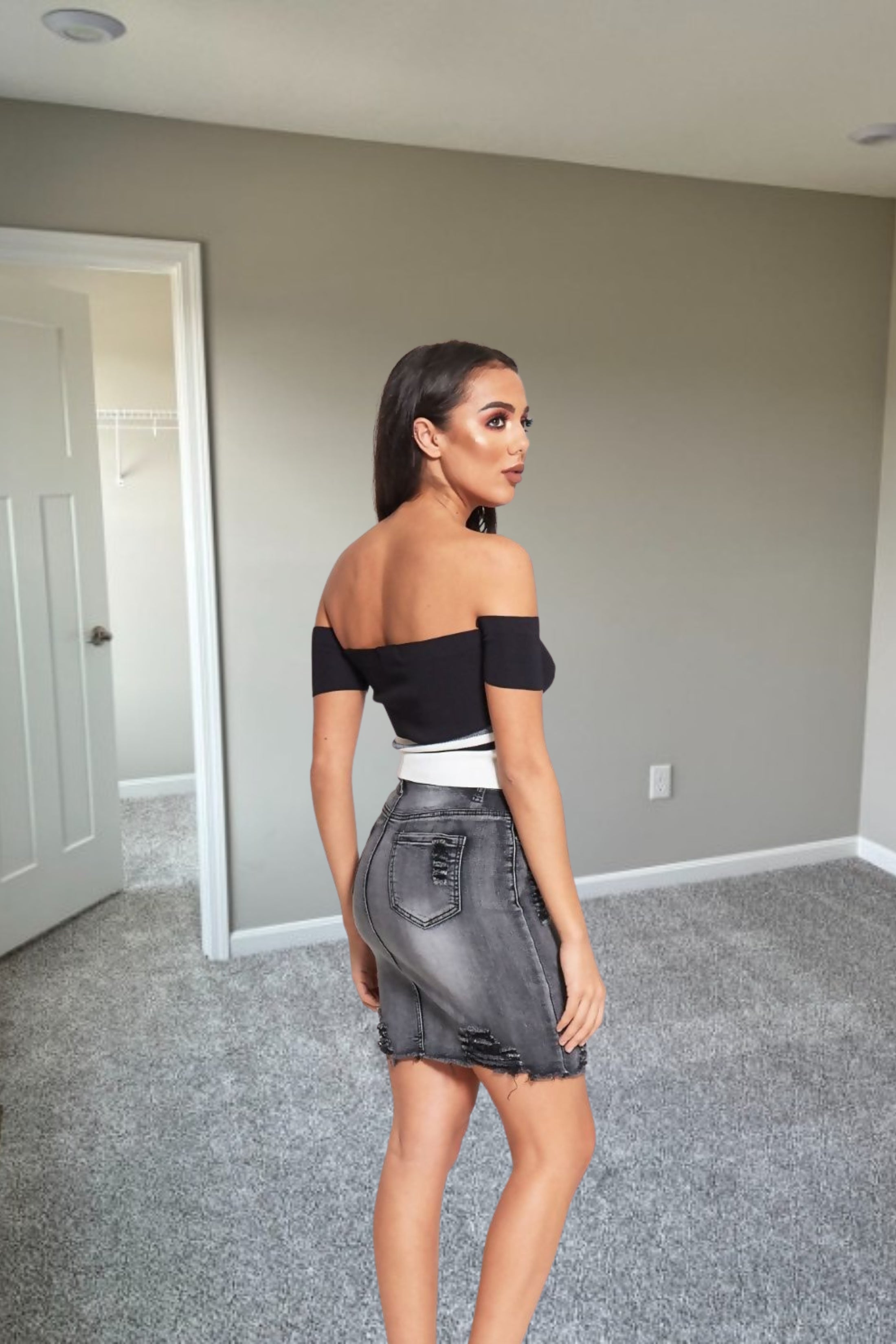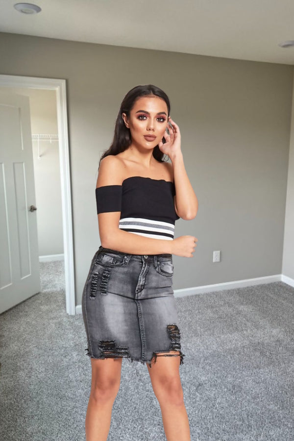 Charcoal High Waisted Denim Mini Skirt - Karita