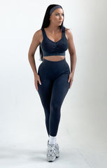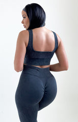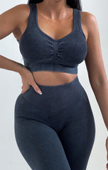 Charcoal Ribbed Detail Crop Top And Leggings Activewear Set - Retta