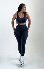 Update your wardrobe and give your workout look an update in our Charcoal Ribbed Detail Crop Top And Leggitivewear Set. Featuring a ribbed texture with a strappy sports bra and high waisted leggings, this breathable fabric will be an essential this season. Team with your fave trainers and a resistance band for the ultimate look.