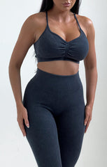 Charcoal Ribbed Strappy Sports Bra And Leggings Activewear Set