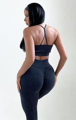 Charcoal Ribbed Strappy Sports Bra And Leggings Activewear Set - Rizzo