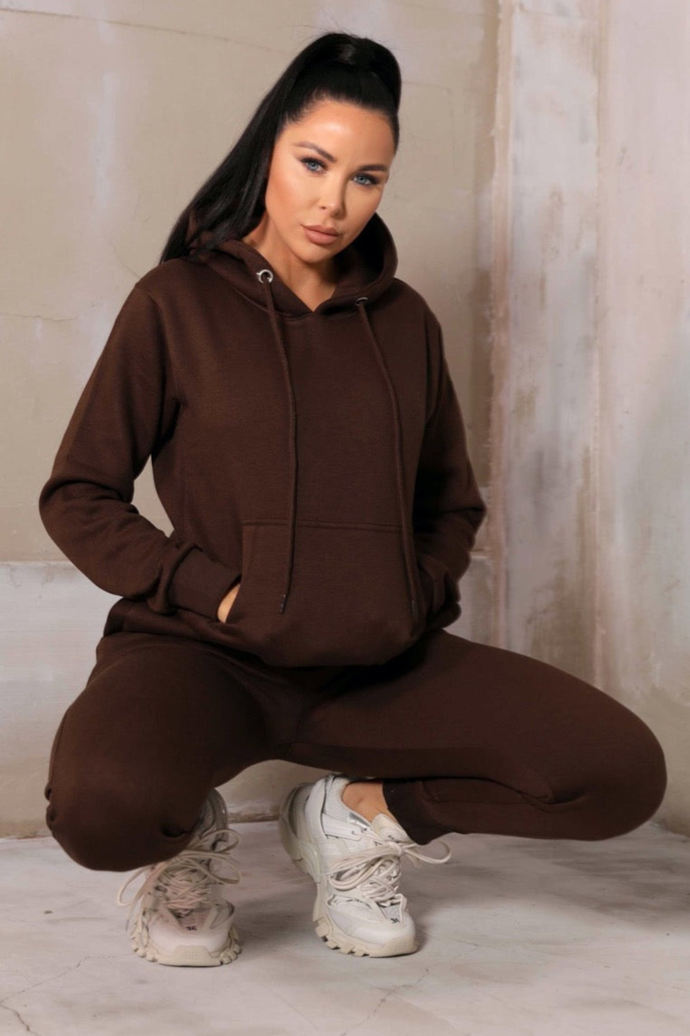 Chocolate Hoodie & Skinny Joggers Tracksuit Set