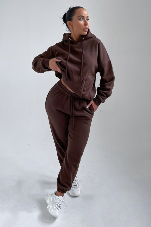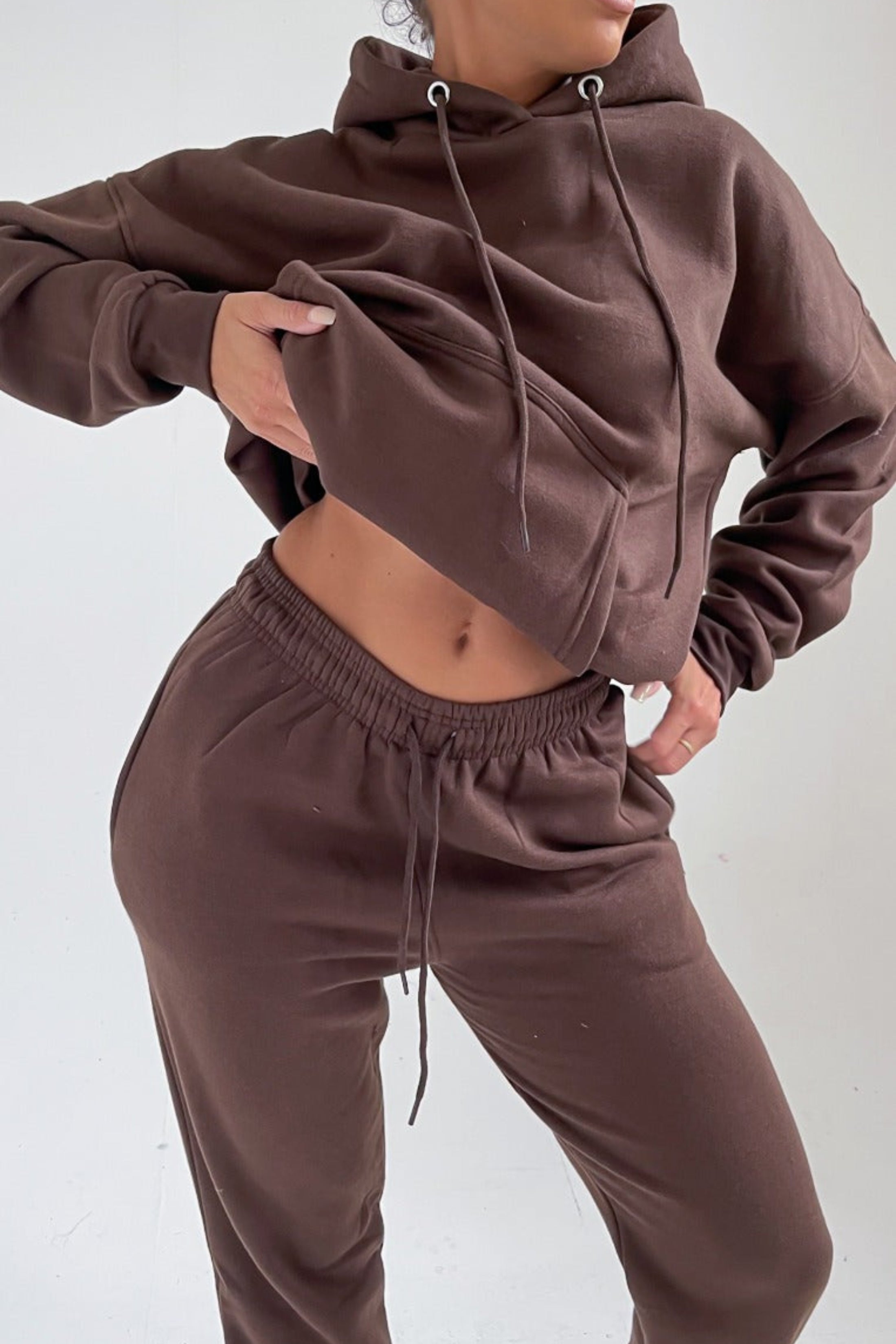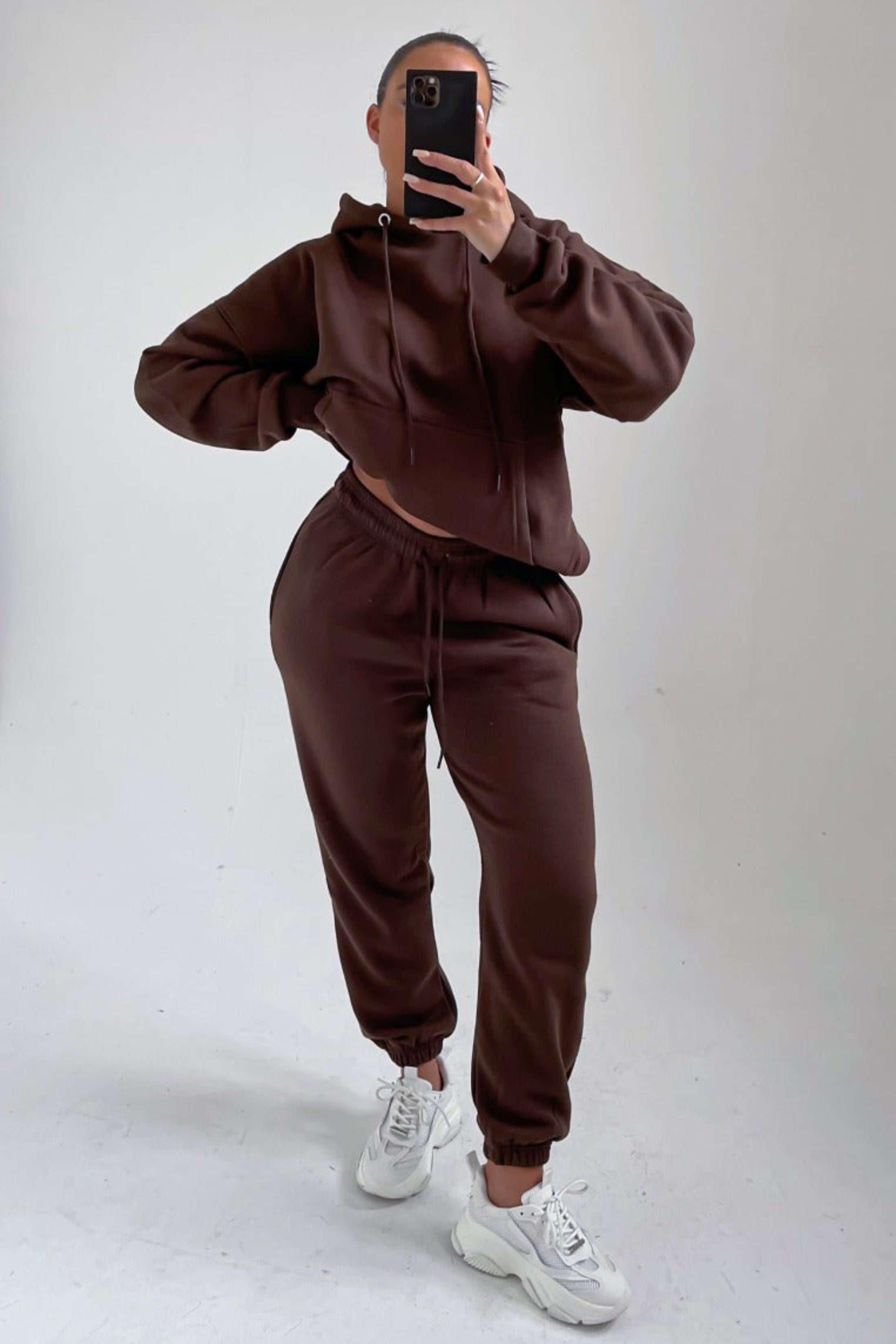 Chocolate Oversized Front Pocket Pullover Hoodie Cuffed Joggers Loungewear Set