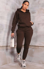 Chocolate Zip Up Hoodie Cuffed Joggers Loungewear Set - Sibyl