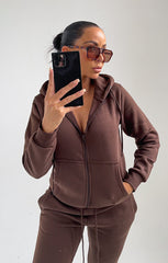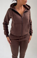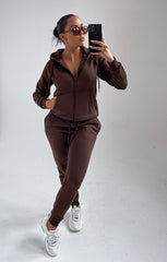 Chocolate Zip Up Hoodie Cuffed Joggers Loungewear Set
