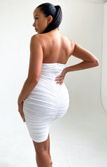 Slay it in slinky in our Cream Ruched Mesh Bandeau Bodycon Midi Dress. Featuring a gorg' ruched design, a strapless style and a flattering bodycon fit in a midi length and chic slinky material, this dress is gonna look hot AF on you, doll. Team with lace up heels and a clutch for a look we're obsessed with.