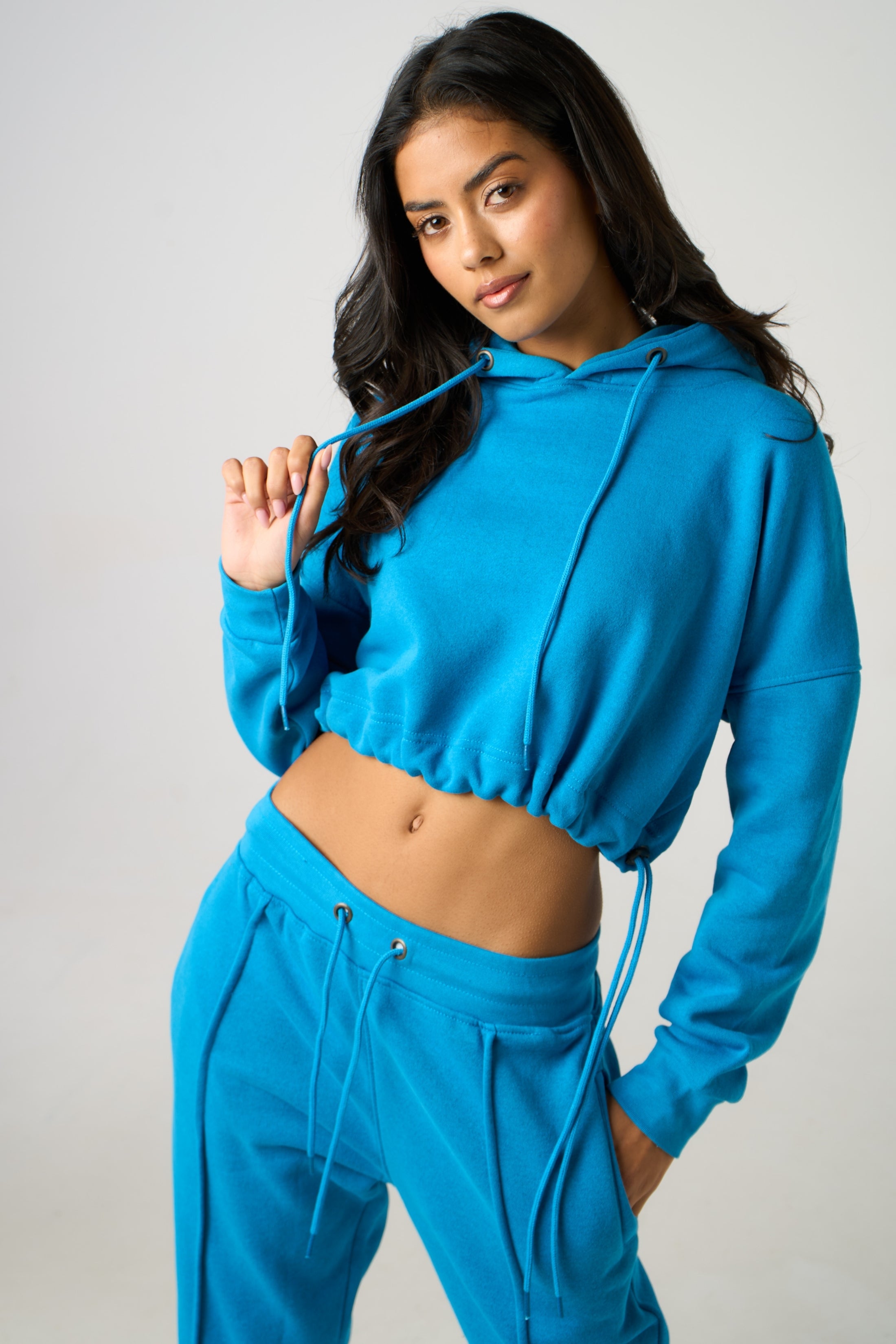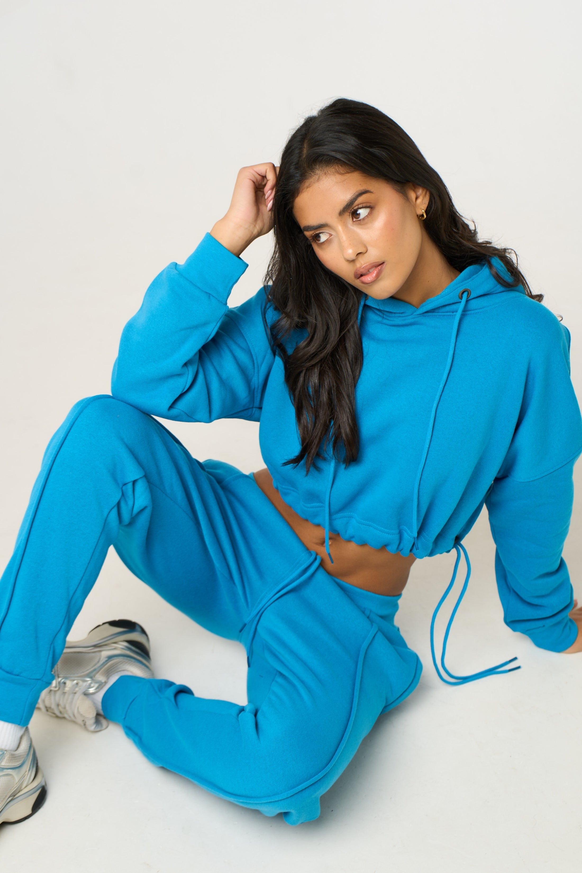 Dusky Blue Boxy Cropped Hoodie Cuffed Joggers Loungewear Set