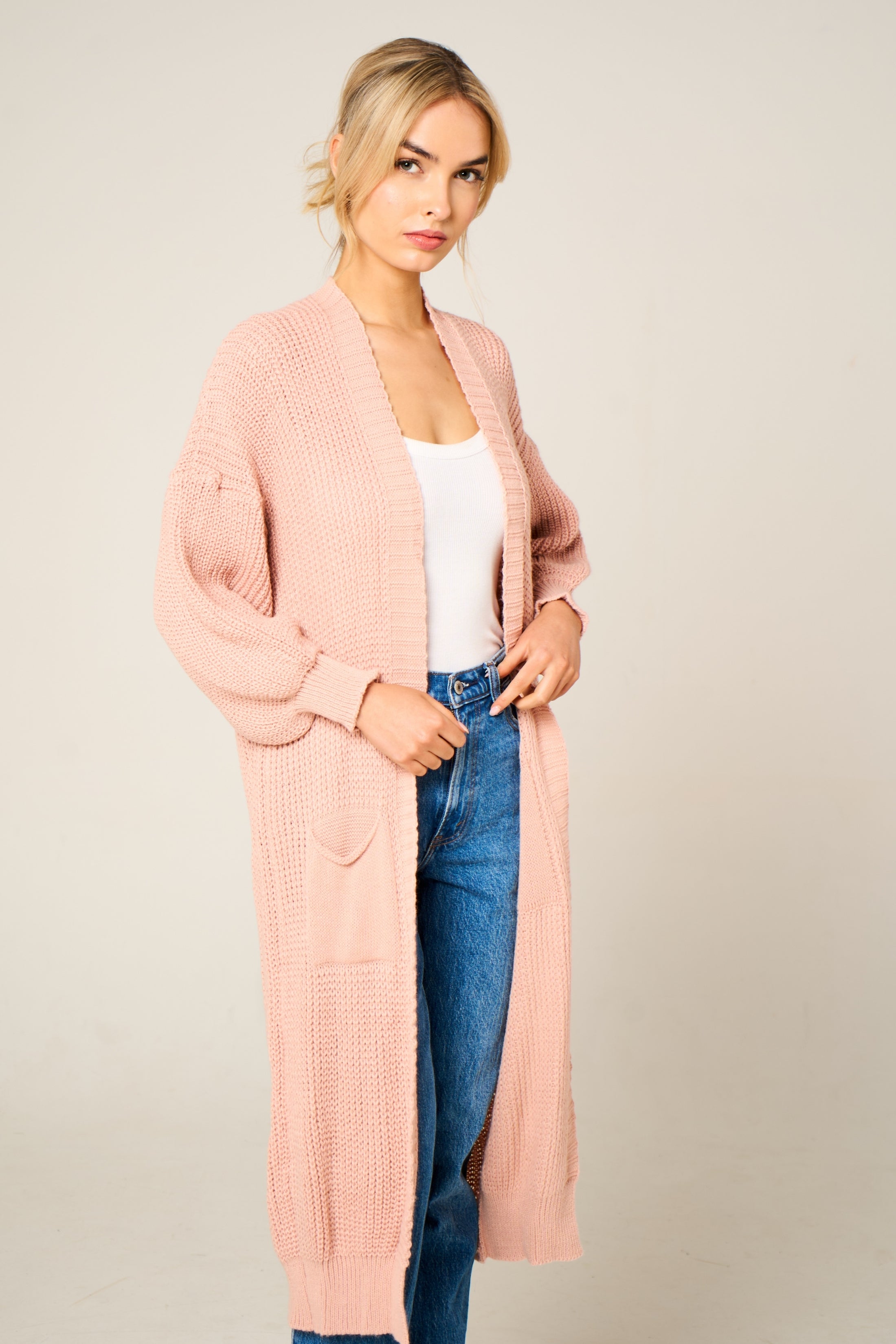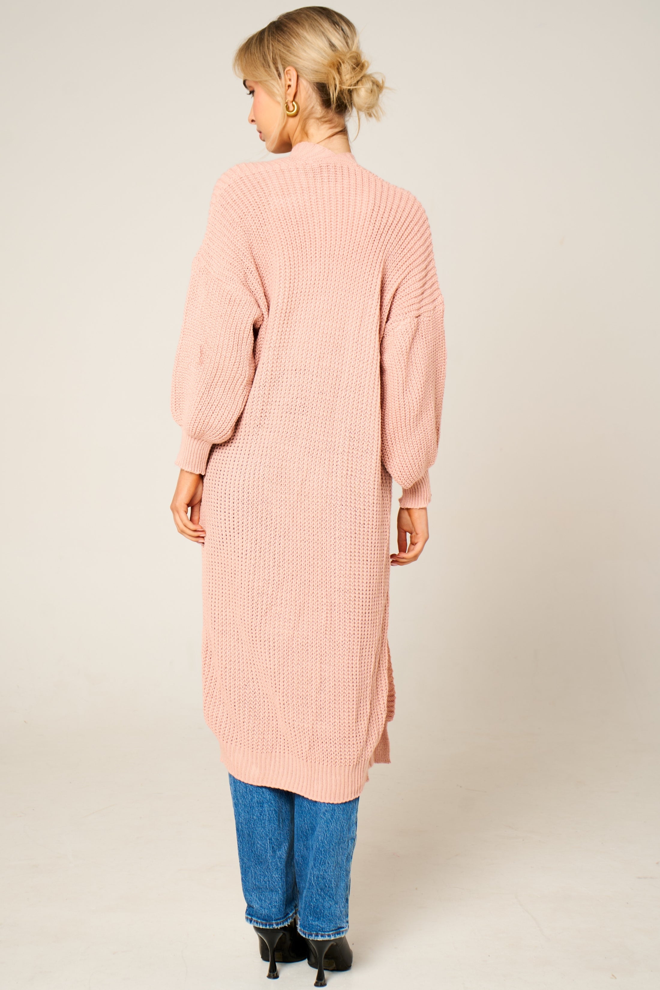 Dusty Pink Knitted Long Sleeve Pocket Detail Ribbed Cardigan - Leanne