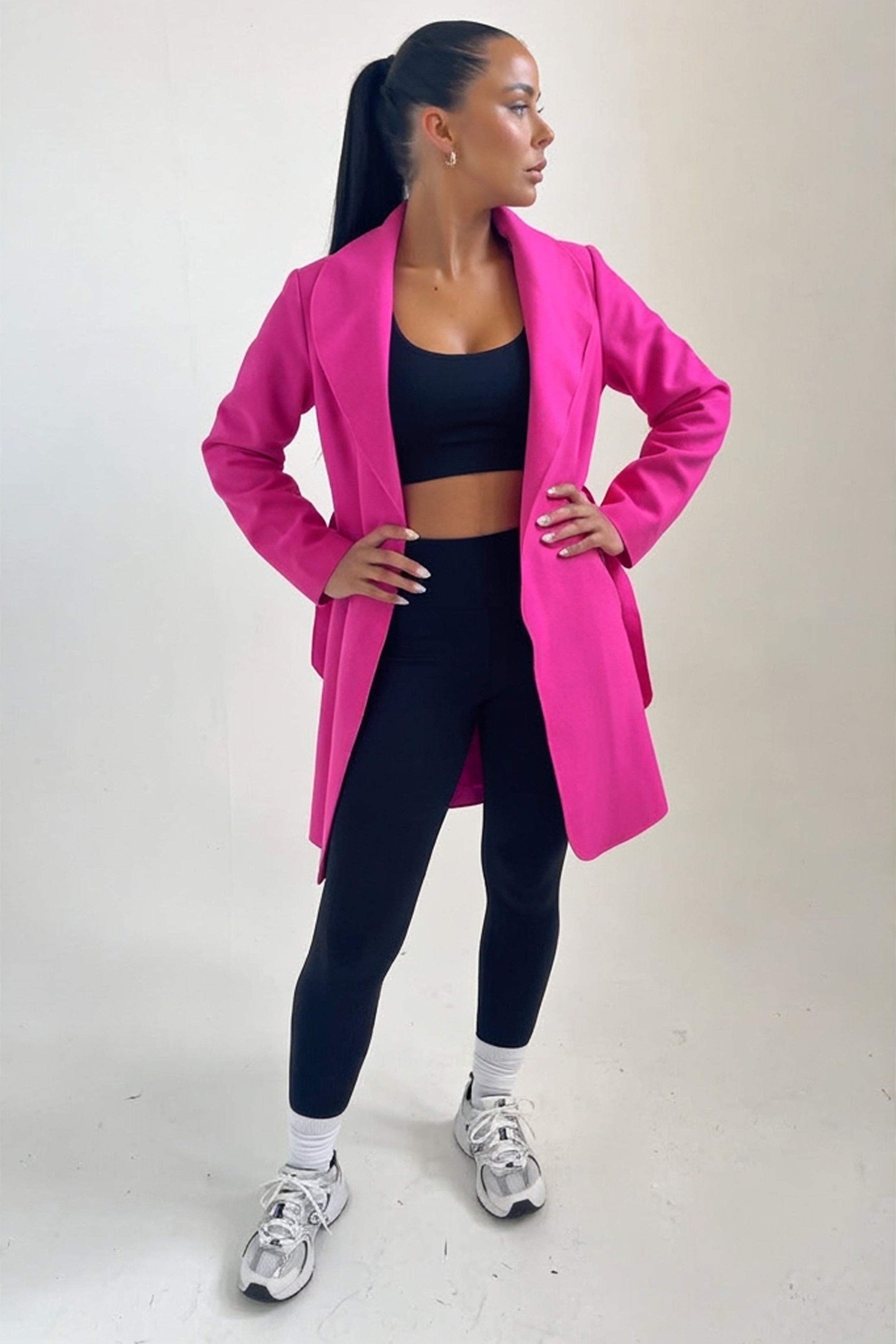 Fuchsia Waterfall Duster Belted Long Coat- Pola