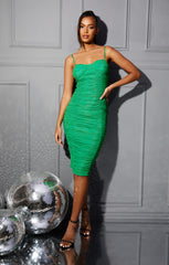 Green Mesh Ruched Bust Detail Strappy Bodycon Midi Dress - Arielle