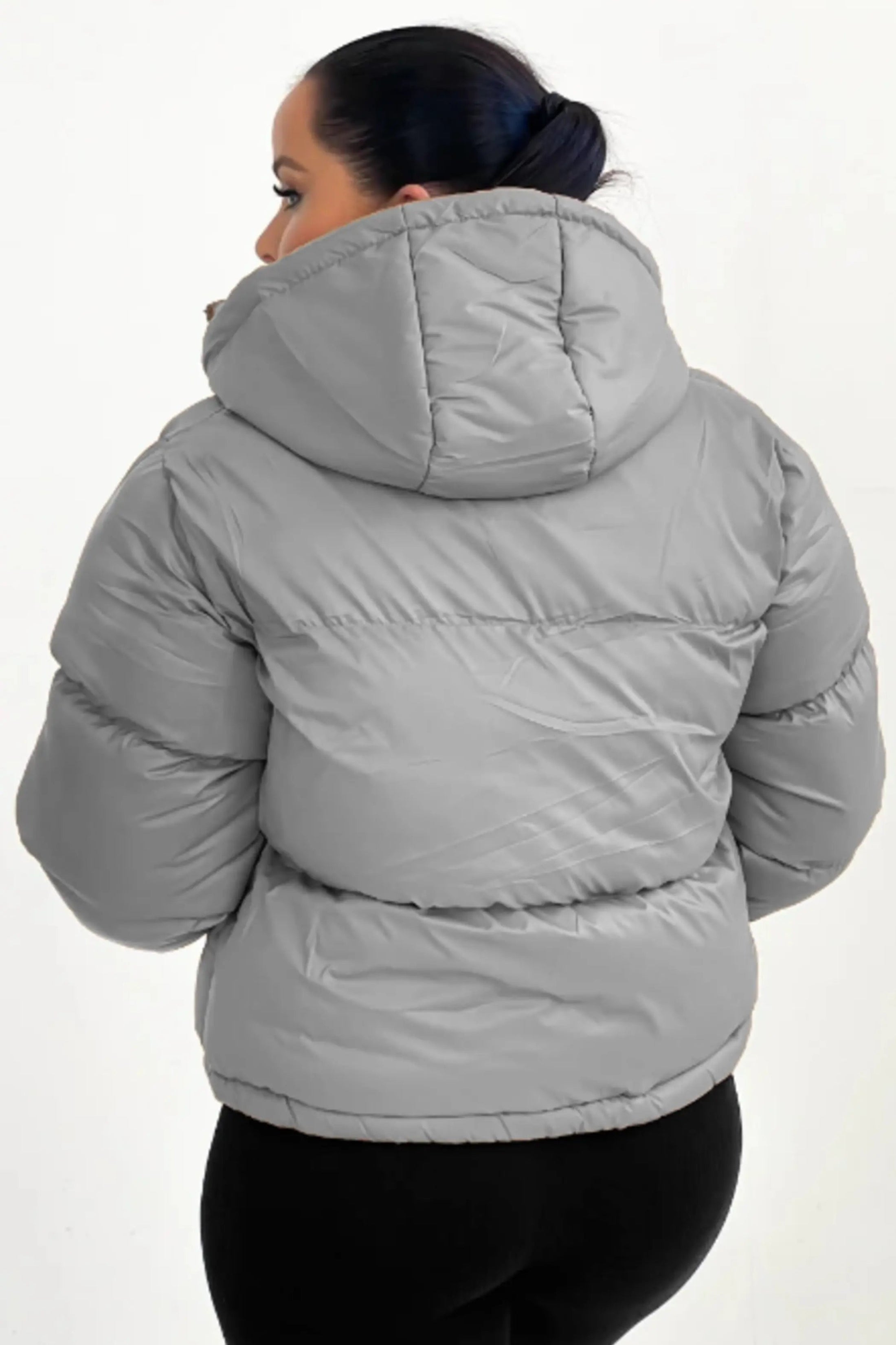 Grey Hooded Drawstring Cropped Puffer Jacket - Stacey
