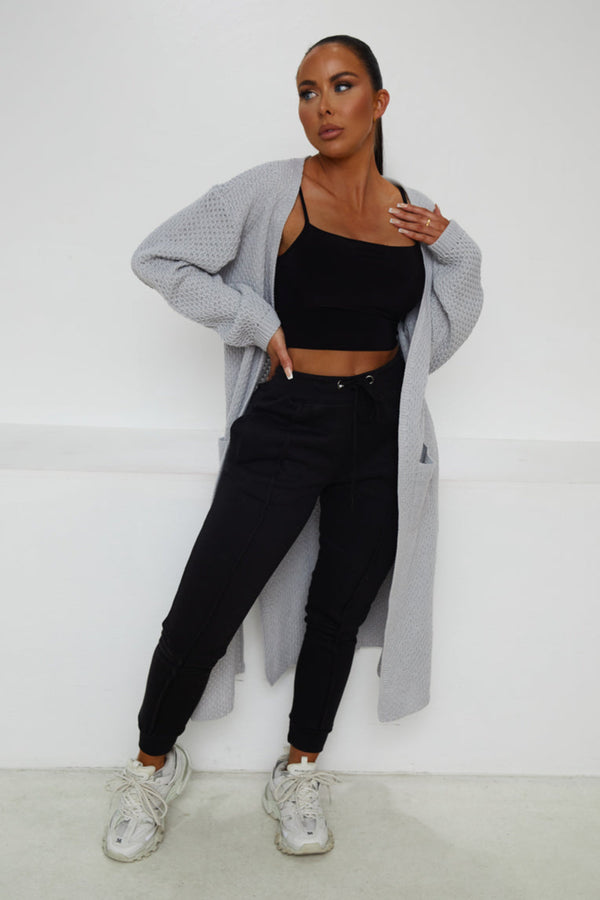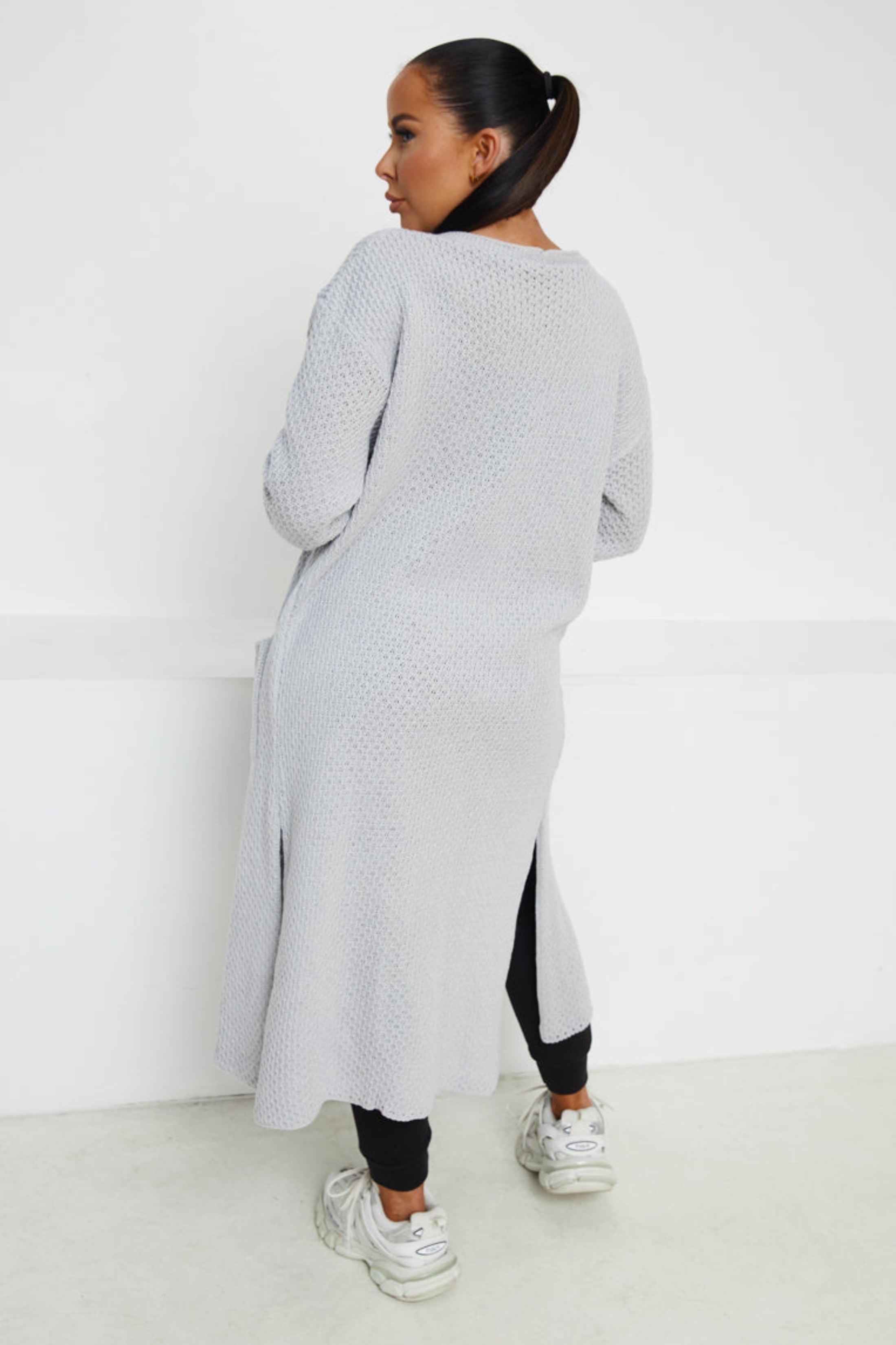Grey Knitted Long Sleeve Side Split Longline Midi Cardigan - Avery