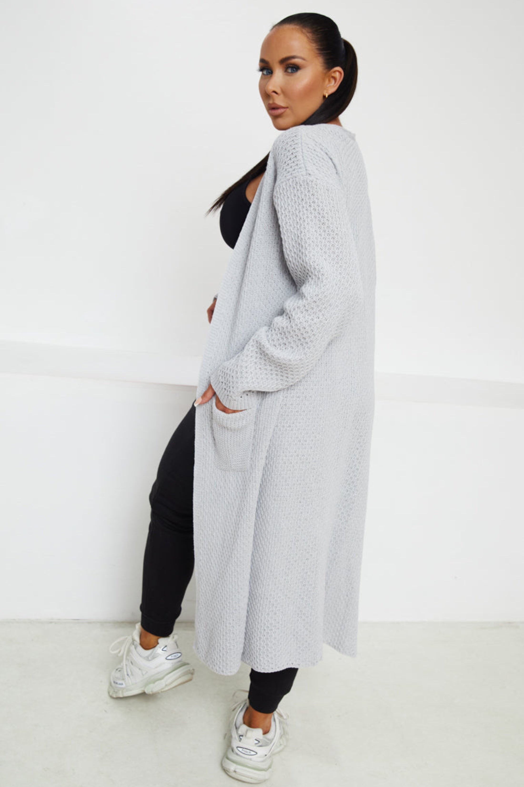 Grey Knitted Long Sleeve Side Split Longline Midi Cardigan