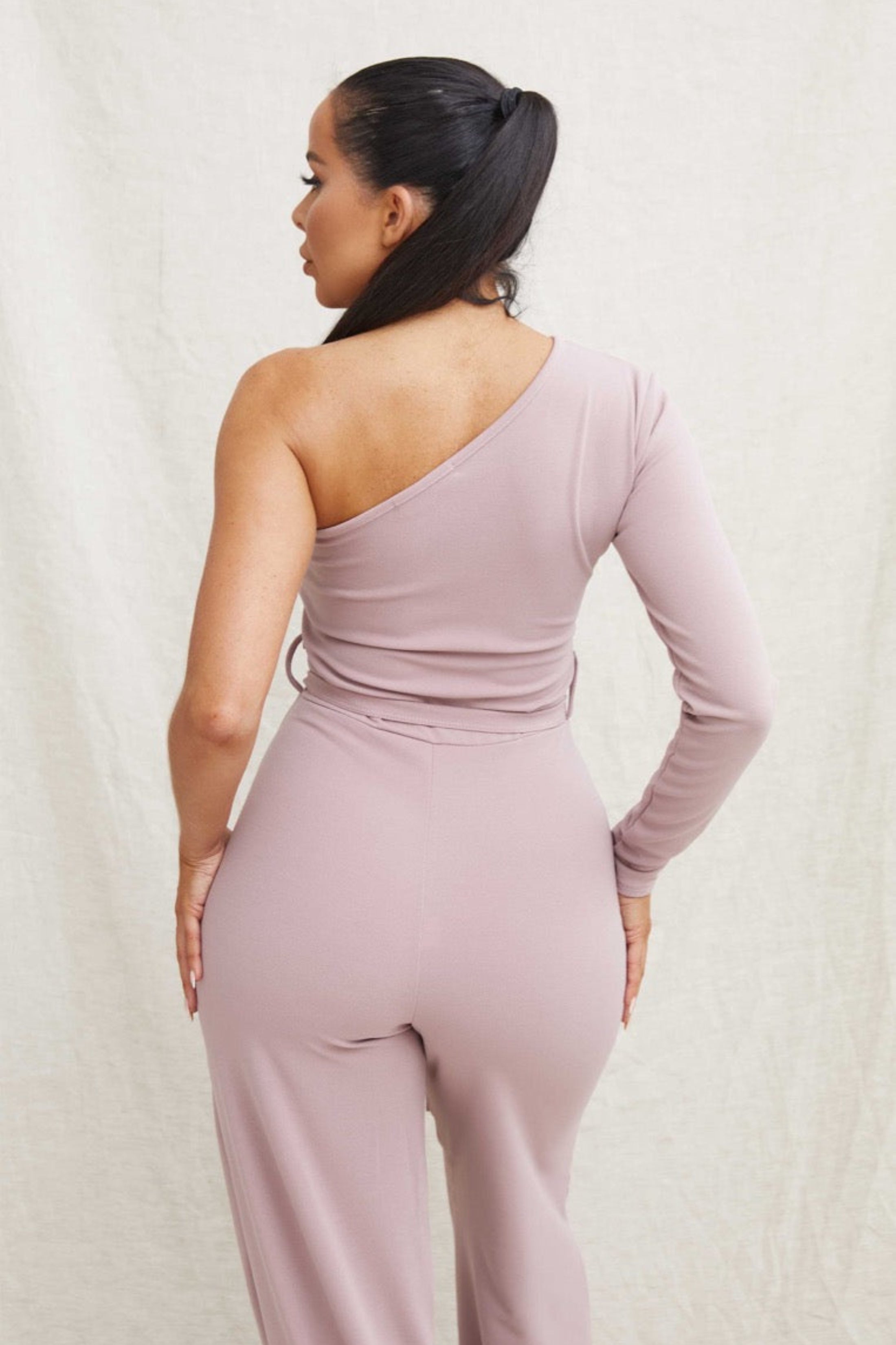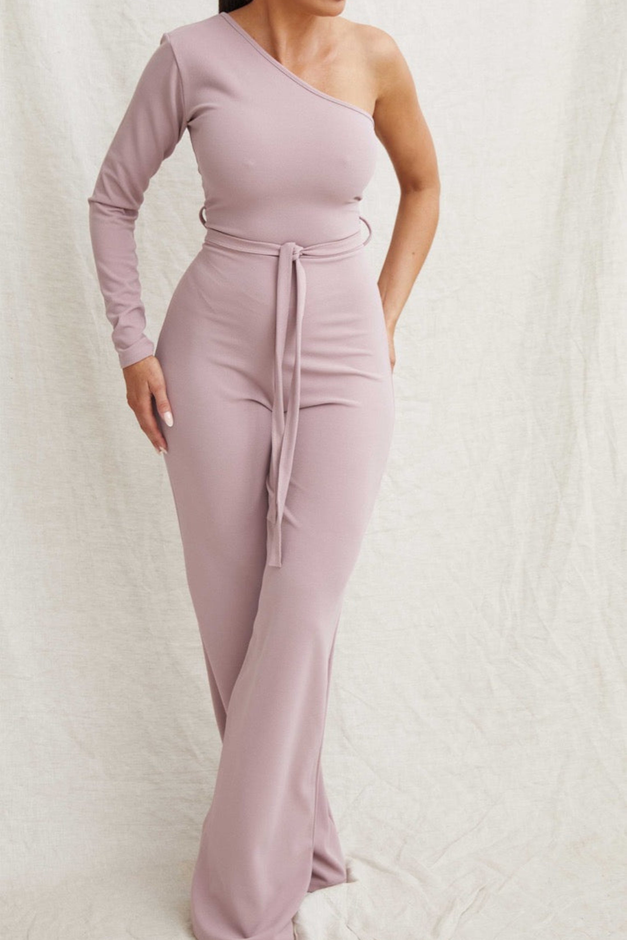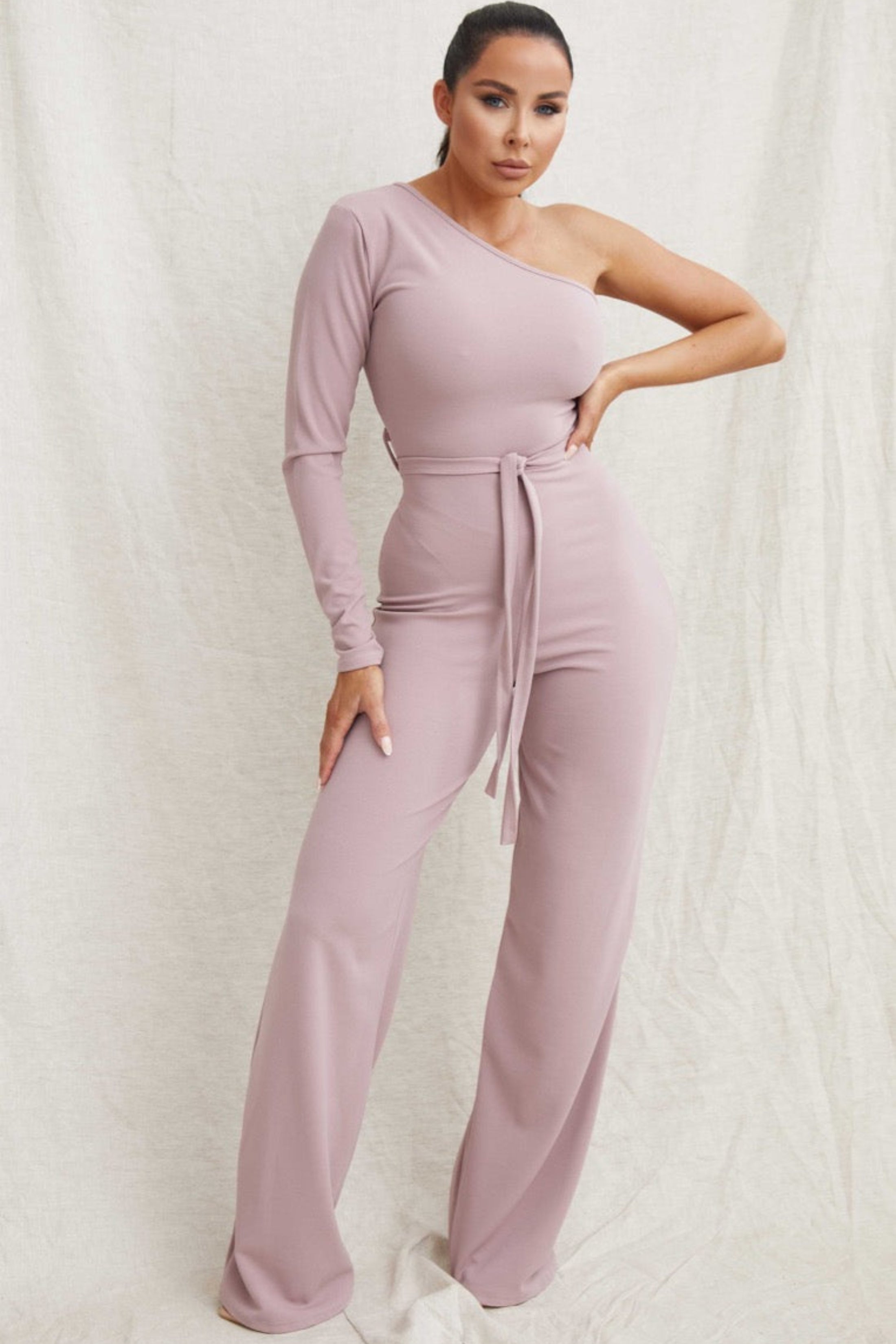 Mauve Belted One Shoulder Jumpsuit - Evelyn