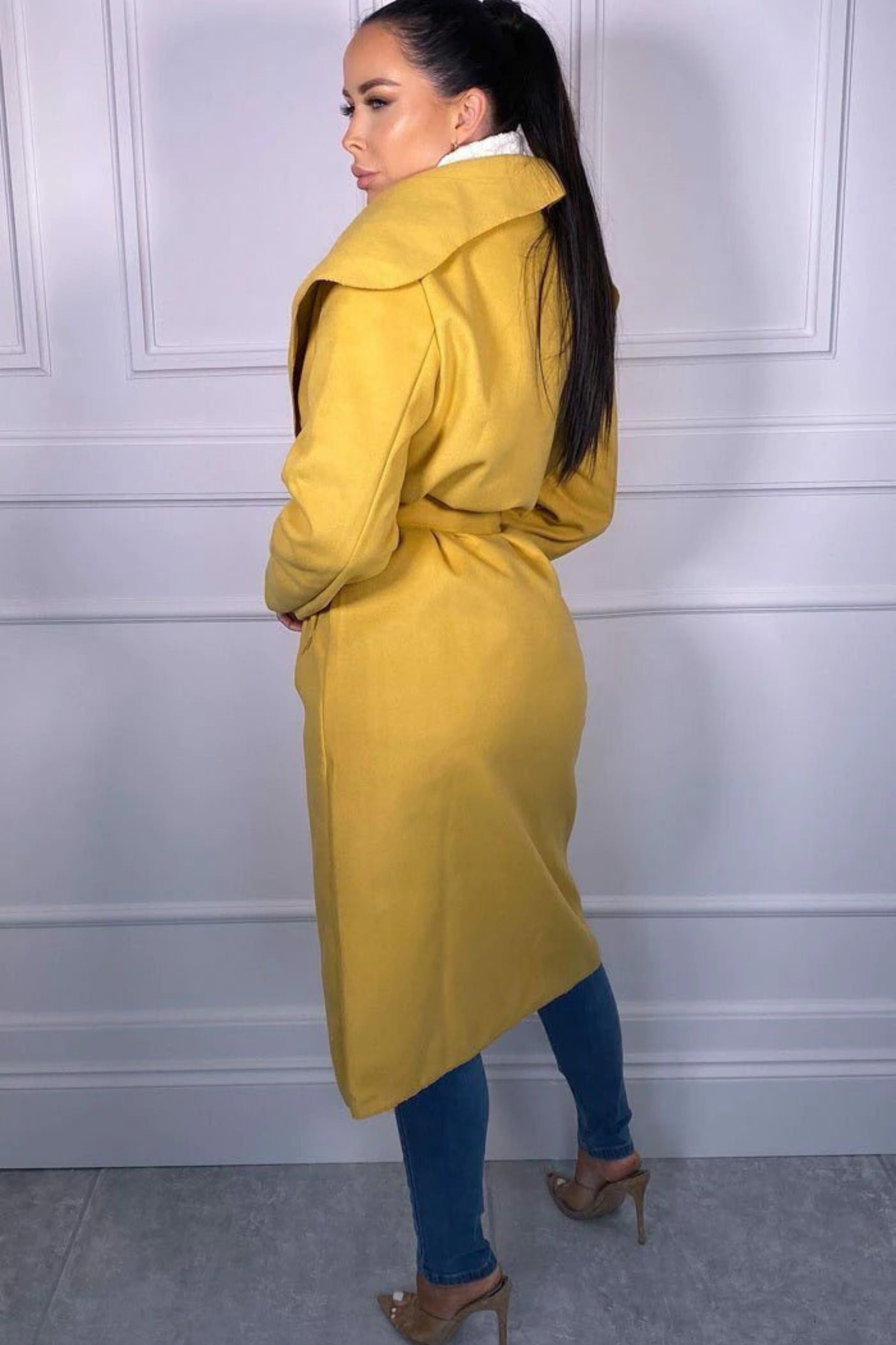 MUSTARD ITALIAN COLLAR BELTED LONG COAT