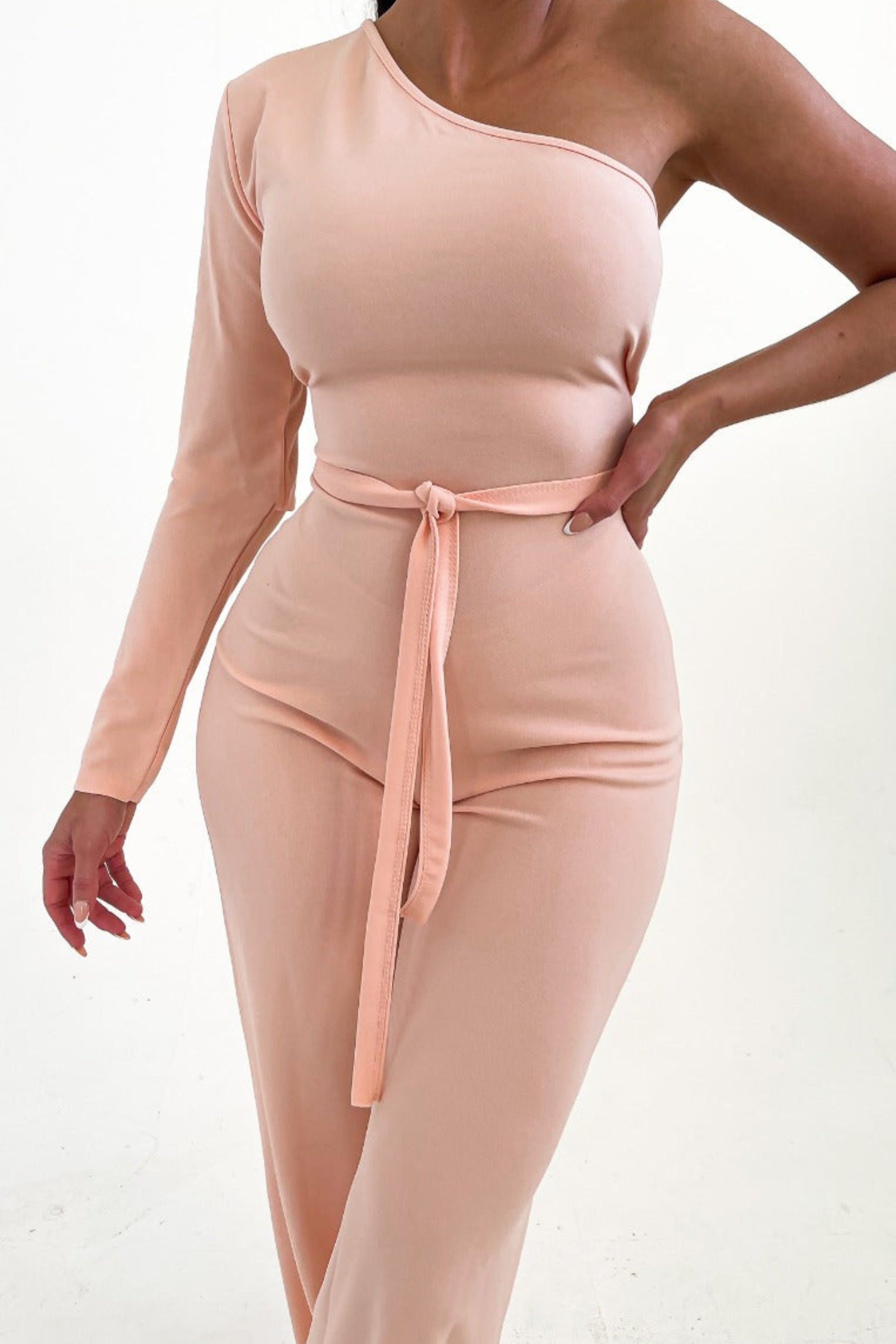 Nude Belted One Shoulder Jumpsuit - Evelyn