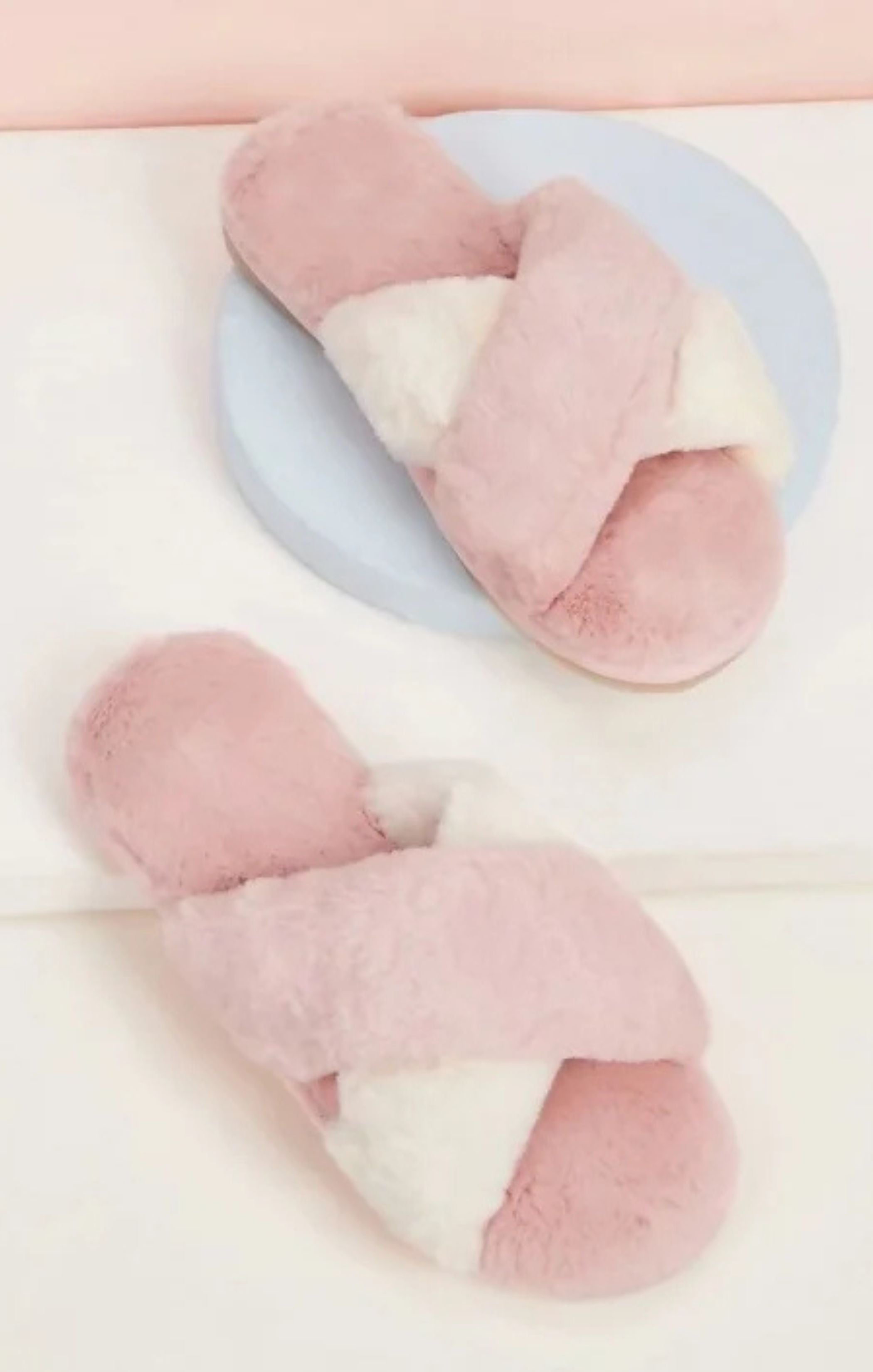 Indulge in plush perfection with the Pink Fluffy Cross Strap Slippers, where cozy comfort meets playful elegance. Evoking a dreamy, spa like vibe with a touch of modern charm, these slippers are a fan favourite for lounging in style or adding a soft pop of colour to your casual looks. Crafted with a luxurious fluffy texture in a delicate blush pink, they feature a chic cross strap design with a creamy white accent, offering a snug yet breathable fit. The cushioned sole ensures all day comfort, making them perfect for pampering your feet. Pair them with your favourite satin pajama set for a luxe at home aesthetic, or style them with a soft knit dress for a cozy yet cute ensemble.