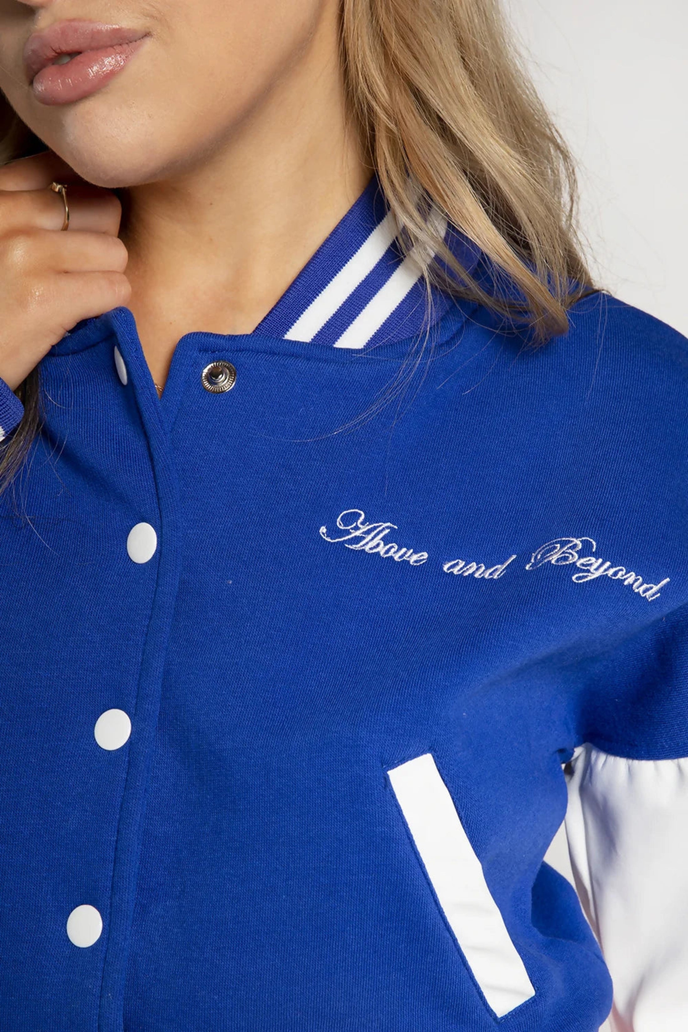 Royal Blue Varsity Slogan Contrast Sleeve Bomber - Hallie