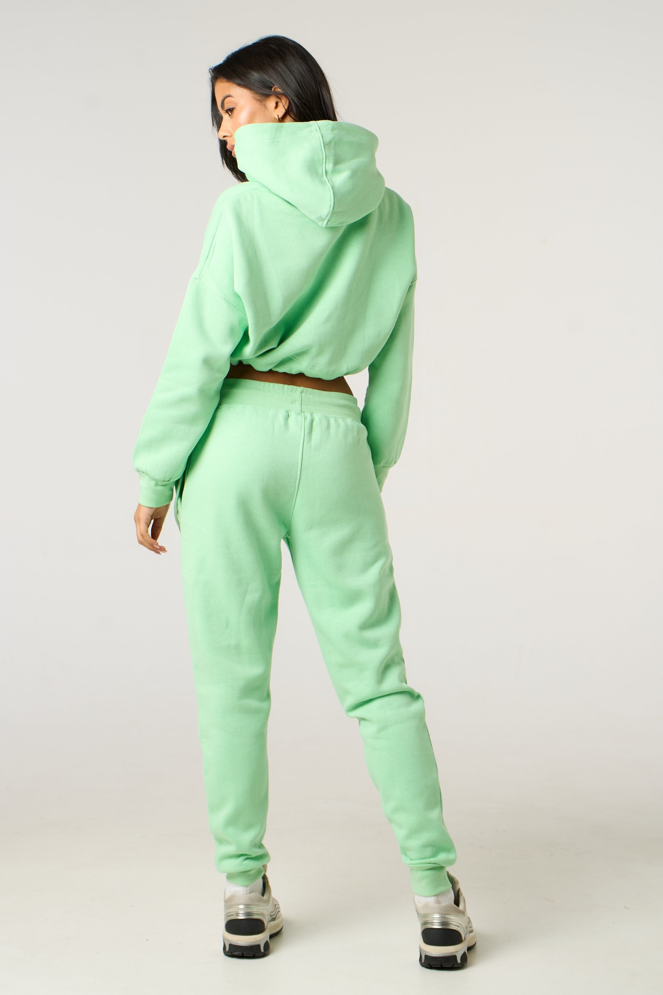Sage Boxy Cropped Hoodie Cuffed Joggers Loungewear Set - Cailleigh