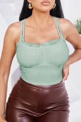 Sage Ruched Bust Frill Detail Criss Cross Strappy Crop Top