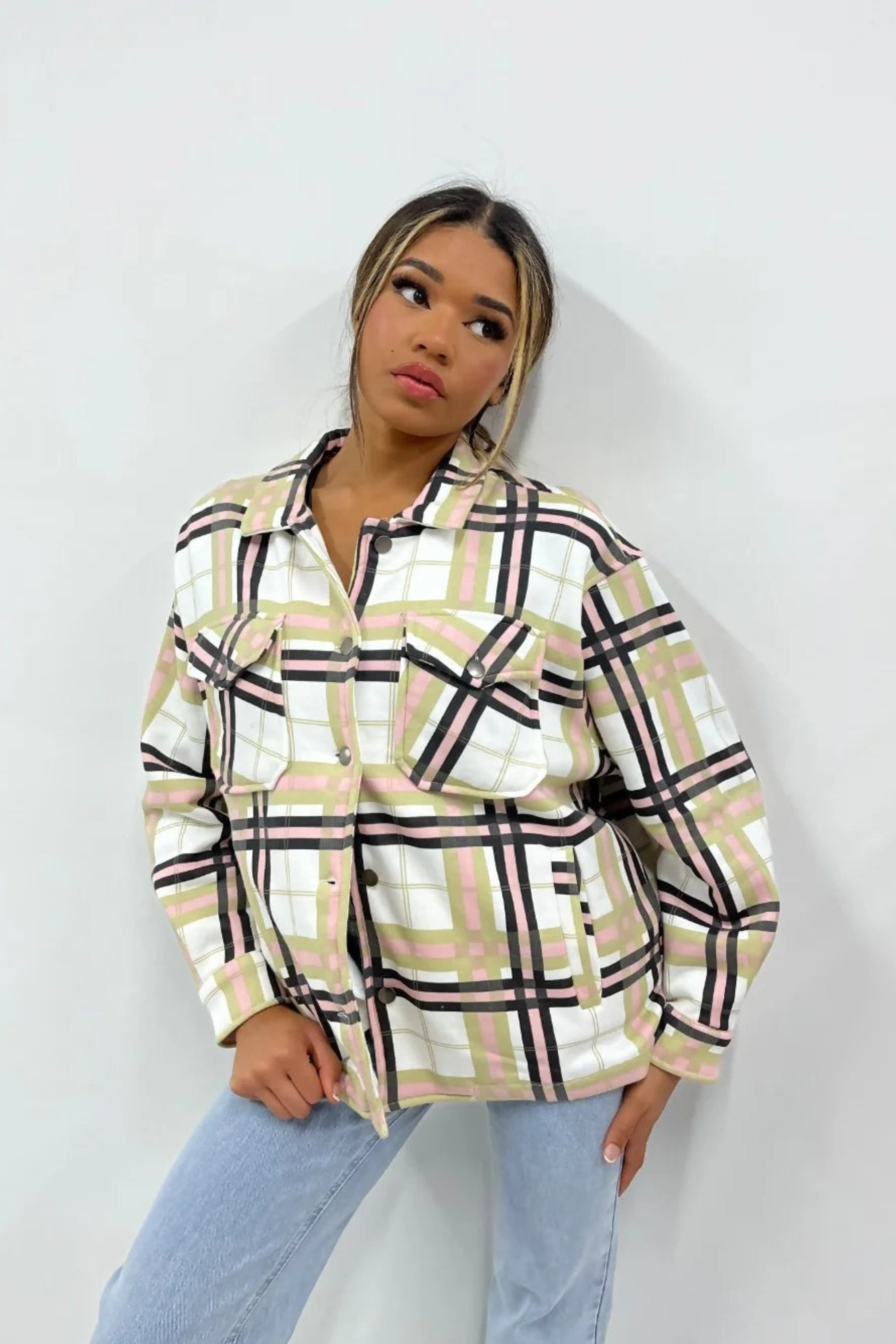 Stone Check Print Oversized Button Up Pocket Shacket - Isabella