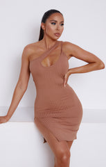 Taupe Ribbed One Shoulder Cut Out Bodycon Mini Dress