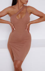 Taupe Ribbed One Shoulder Cut Out Bodycon Mini Dress - Lucia