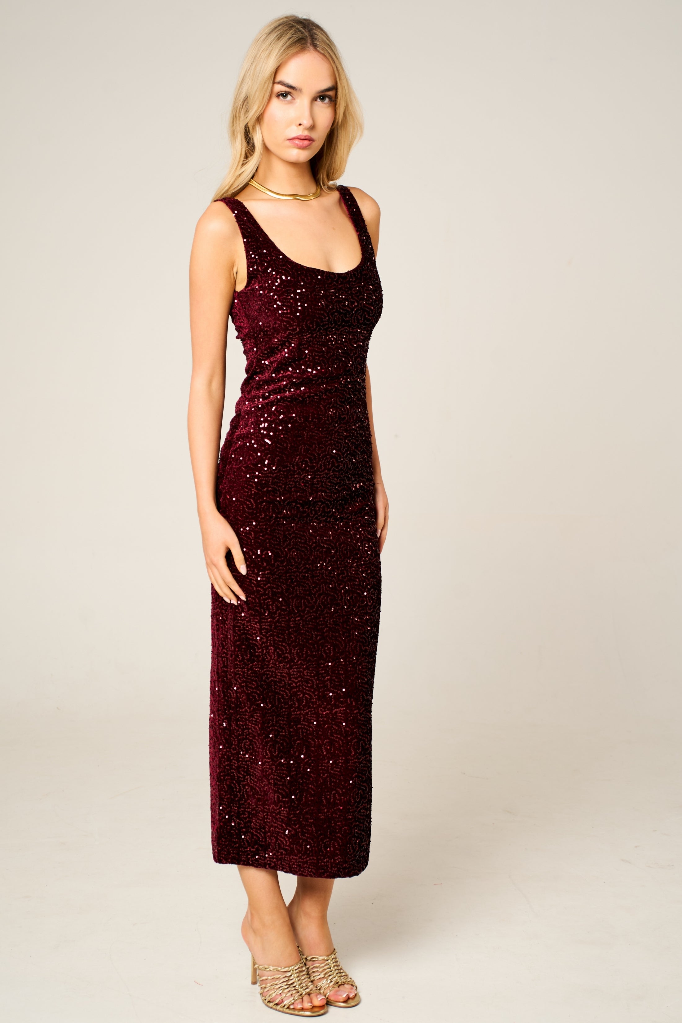Wine Sequin Sleeveless Sparkly Bodycon Midi Dress